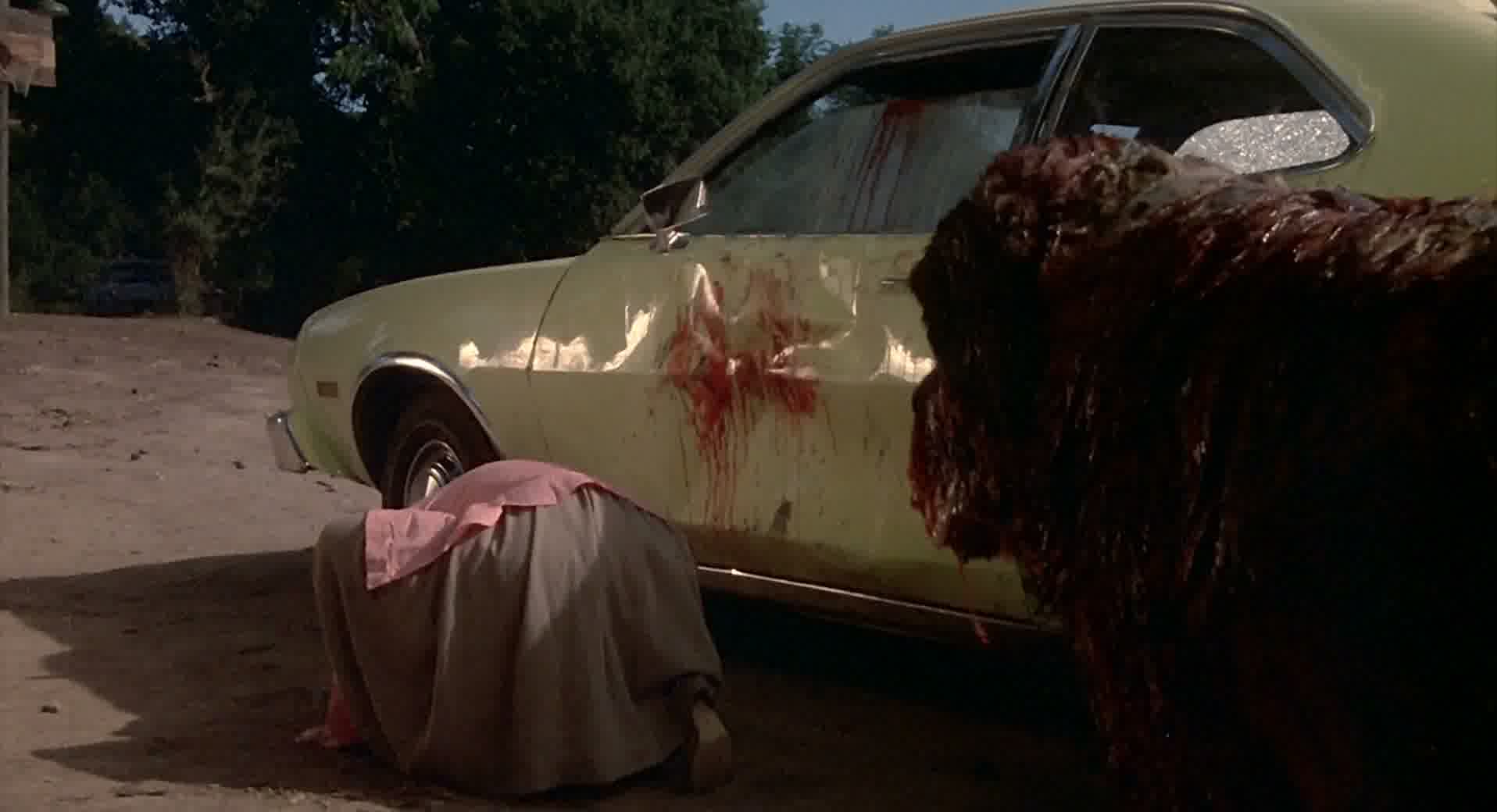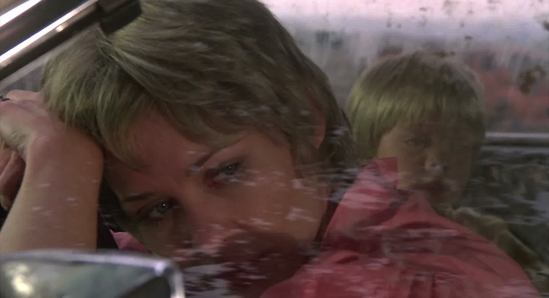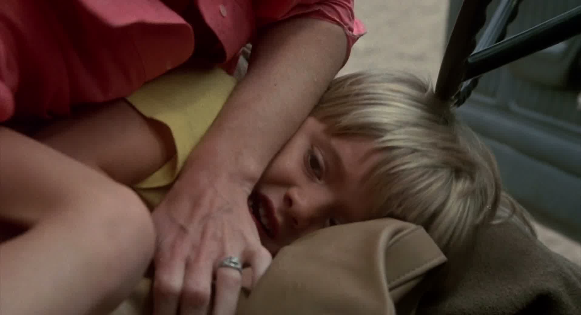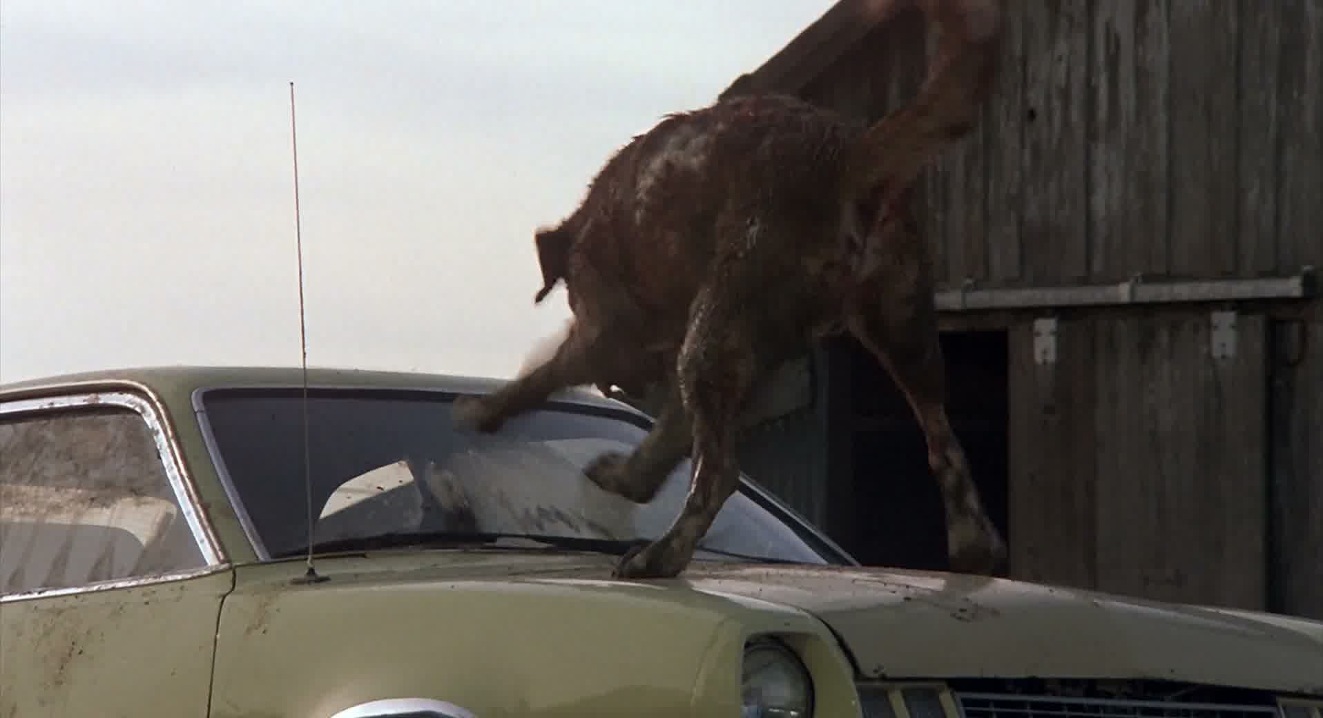 Mais là où Cujo se montre alors véritablement prenant et intéressant, c’est dans sa dernière partie, où Donna et son fils Tad se retrouvent enfermés dans une voiture qui ne fonctionne plus, encerclés par Cujo, le chien féroce. Là, le réalisateur avait du boulot, entre le chien a rendre crédible, la tension a maintenir. Et ça marche magnifiquement bien au final, grâce à l’utilisation de cinq chiens différents, et des acteurs qui semblent réellement à bout, rendant l’enfermement et les différentes menaces (le chien bien entendu, mais la chaleur dans la voiture, la soif, la faim également) crédibles. Le stress augmente au fur et à mesure des attaques du chien, toujours plus féroces. C’est grâce à cette tension d’ailleurs que l’on a envie de pardonner beaucoup de choses à Cujo, comme son scénario plutôt simpliste au final, une fin différente du livre, et finalement, un rythme qui met du temps avant de décoller, la première partie s’axant uniquement sur les personnages. Sans être la meilleure adaptation de King, Cujo se place aisément du côté des excellentes adaptations.
