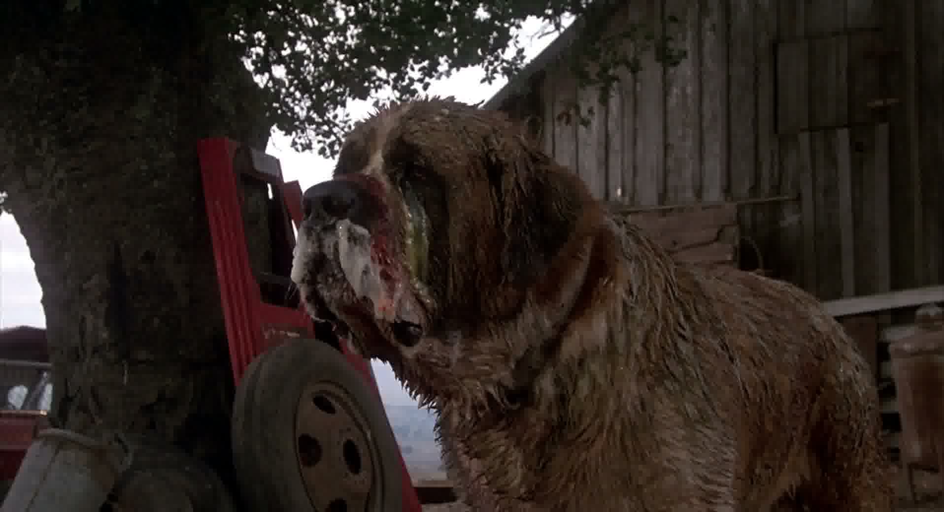 Plutôt oui, puisque Cujo est une très bonne adaptation de son roman, même si on lui reprochera un final beaucoup moins sombre que dans celui-ci (mais apparemment, Stephen King préfère la fin du film à celle de son roman…). Cujo, c’est donc la lutte entre une mère et son fils contre un saint-bernard qui contracte la rage après une vilaine morsure. Rien de bien palpitant comme ça, surtout que l’intrigue semble aux premiers abords prendre son temps. Mais ce n’est que pour mieux rendre sa seconde partie efficace et augmenter l’implication du spectateur. Car comme souvent chez Stephen King, Cujo, avant de faire apparaître un élément horrifique, nous parle d’une famille. À la manière de Shining justement, la famille ici est propre en apparence, le père a un bon travail, la mère est exemplaire et souriante, et ils s’occupent parfaitement de leur enfant. Mais ce n’est qu’en apparence, puisqu’un élément qui nous est amené petit à petit par le récit détruit la famille de l’intérieure, faisant des personnages des éléments importants du récit et auxquels l’on peut s’attacher, il ne s’agît pas de coquilles vides. Lewis Teague a fait du bon travail en dirigeant ses acteurs de main de maître.