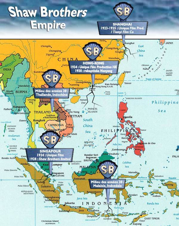 Au début des années 30, les quatre frères Shaw ont d’ores et déjà établi leur mode d’organisation : un découpage géographique, chacun d’eux se fixant dans une ville portuaire à forts potentiels démographique et économique (Shanghai, Hong Kong et Singapour), et une division du travail en plusieurs métiers bien cloisonnés (production, comptabilité, distribution et exploitation).