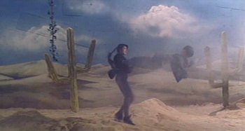 C’est d’ailleurs eux, avec bien entendu Cynthia Khan, qui vont assurer le côté « spectacle » du film grâce à des scènes d’action complètement too much tant elles sont exagérées. Forcément, les capacités hors normes des robots vont permettre bien des mouvements défiants toutes les lois de la gravité, Cynthia Khan allant même jusqu’à reproduire certains mouvements du jeu Street Fighter II, comme le coup de pied hélicoptère de Chung Li, pseudo dont elle se verra d’ailleurs affublée dans toute la 2ème moitié du film. S’en suivent donc des combats dans le ton du film, à savoir en plein dans la déconnade, jamais sérieux ou très rarement (celui sur le barrage) finissant généralement sur un gag faisant souvent mouche, à l’instar du passage où Alex Man sort nu dans la rue, uniquement vêtu d’un couvercle de poubelle tenu par Athena Chu. C’est sur, on n’est pas devant du Yuen Woo-Ping ou du Ching Siu-Tung, mais on sait rapidement à quoi s’attendre et on s’y accommode assez facilement (ou pas d’ailleurs).