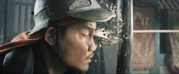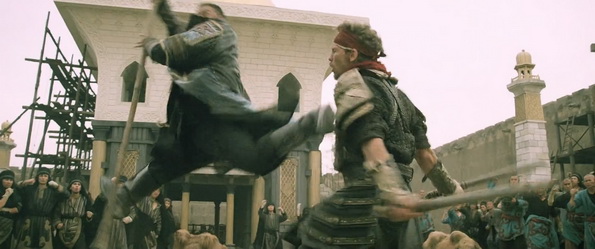 Dragon Blade est donc un film à grand spectacle et les moyens ont été déployés pour en mettre plein la vue. Paysages désertiques superbes, costumes très réussis, des figurants en mode industriel (on parle de 10000), et donc pour le coup des batailles qui en jettent. Assez peu d’action si on prend sur la durée totale du film, mais le final est relativement long, bien pêchu, et chose étonnante, pour un Jackie Chan, assez sanglant voire même sadique. Chorégraphiquement bien fichue, l’action fait également partie des points forts de ce Dragon Blade. Les affrontements Jackie Chan / John Cusack et Jackie Chan / Adrien Brody ne sont vraiment pas dégueulasses et je suis curieux de voir à quel niveau les deux acteurs US ont été doublés car visuellement, ces deux combats devraient ravir les amateurs de castagne et autres coups d’épée dans la gueule.