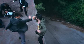 Et du fight, il y en a un sacré paquet. Sur 1h30 de film, comptez bien 1h ou ça se tatane sec. Chorégraphiés par le très bon Li Chung Chi, qui a participé à bon nombre de films de Jackie Chan, les combats sont très nerveux, assez secs et brutaux, avec une utilisation des câbles assez réduite (surtout pour donner une impression de puissance aux coups). Après Coweb, Jiang Lu Xia nous montre qu’elle est toujours aussi rapide et agile, son petit combat contre Andy On est d’ailleurs assez impressionnant. Andy On assure toujours autant et fait le spectacle tout le long du film.