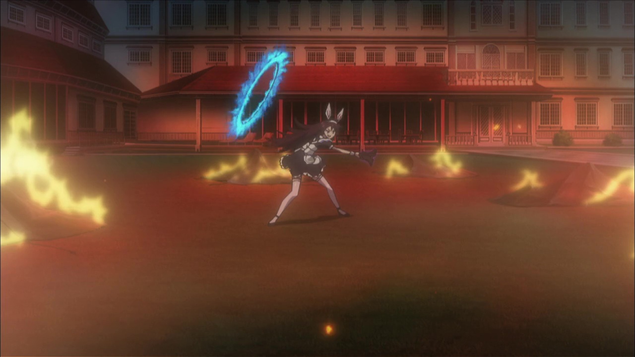En animation, je suis souvent moins compliqué qu’en cinéma live. Parfois, je me lance dans des séries rien qu’à cause de quelques détails. En général, ma sélection s’effectue de manière simple : ça ne doit pas être long, je dois bien aimer le visuel, et le genre ira de l’action au fantastique, en passant par l’horreur, mais pas trop de choses qui ne me bottent pas dés le départ. Absolute Duo, c’était parfait : 12 épisodes seulement, un visuel sympa, et apparemment, un mélange d’action et d’humour, avec des petites touches de fantastiques et d’ecchi. Parfait pour ne pas se prendre la tête. Verdict après 12 épisodes : mitigé ! Absolute Duo contient de bonnes choses, mais à force de vouloir intégrer par moment des éléments de genre ne lui appartenant pas forcément, et bien la série s’avère déséquilibrée, on passe de moments sympathiques à d’autres très discutables. L’histoire ? Un jeune homme intègre une école où il devra combattre en utilisant une arme représentant son âme. Voilà pour l’aspect fantastique, se limitant grosse modo à cet élément, appelé Blaze. Mais notre héro, Tôru, forcément, c’est un héros, donc il ne peut pas faire comme tout le monde. Autour de lui, les élèves ont des sabres, des armes mortelles, et lui, son Blaze, c’est un bouclier.