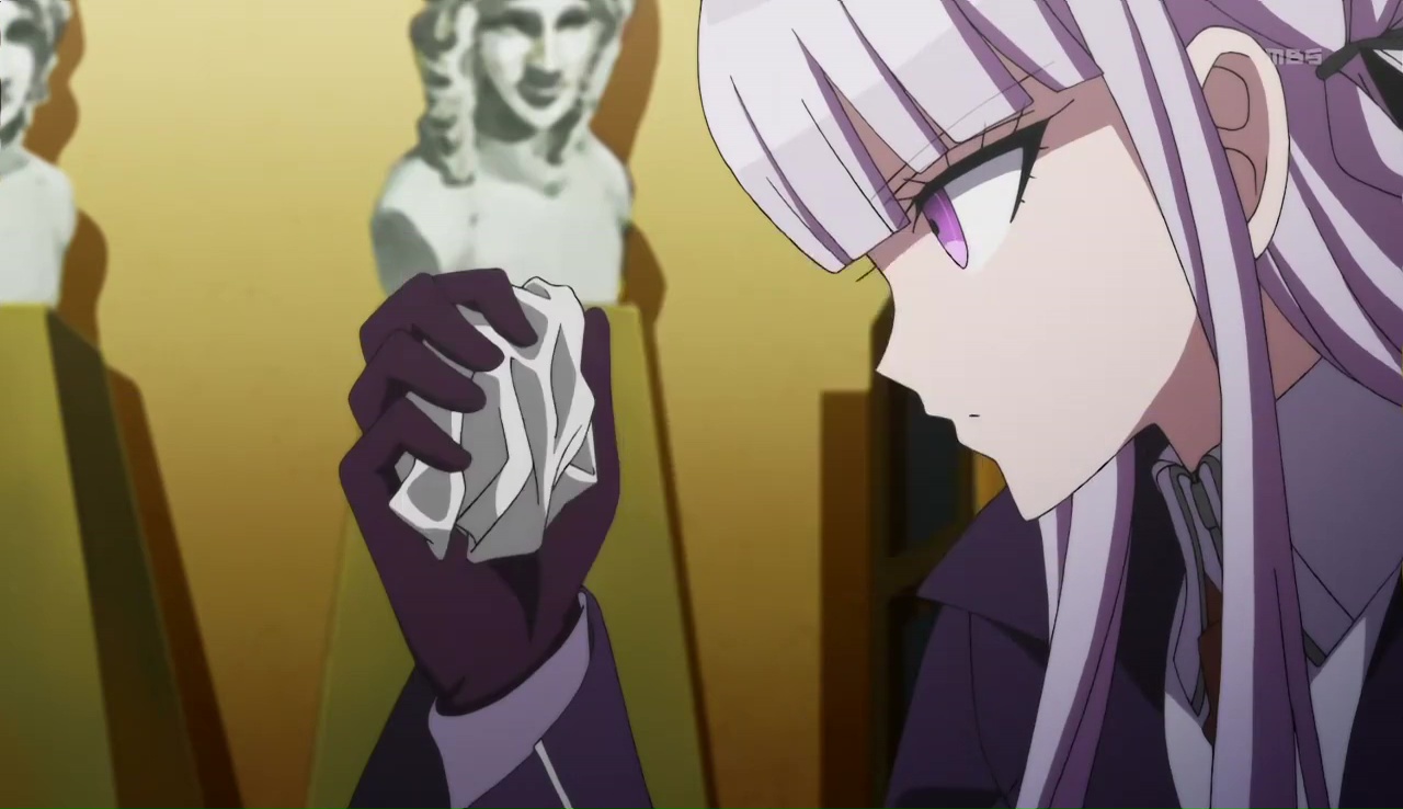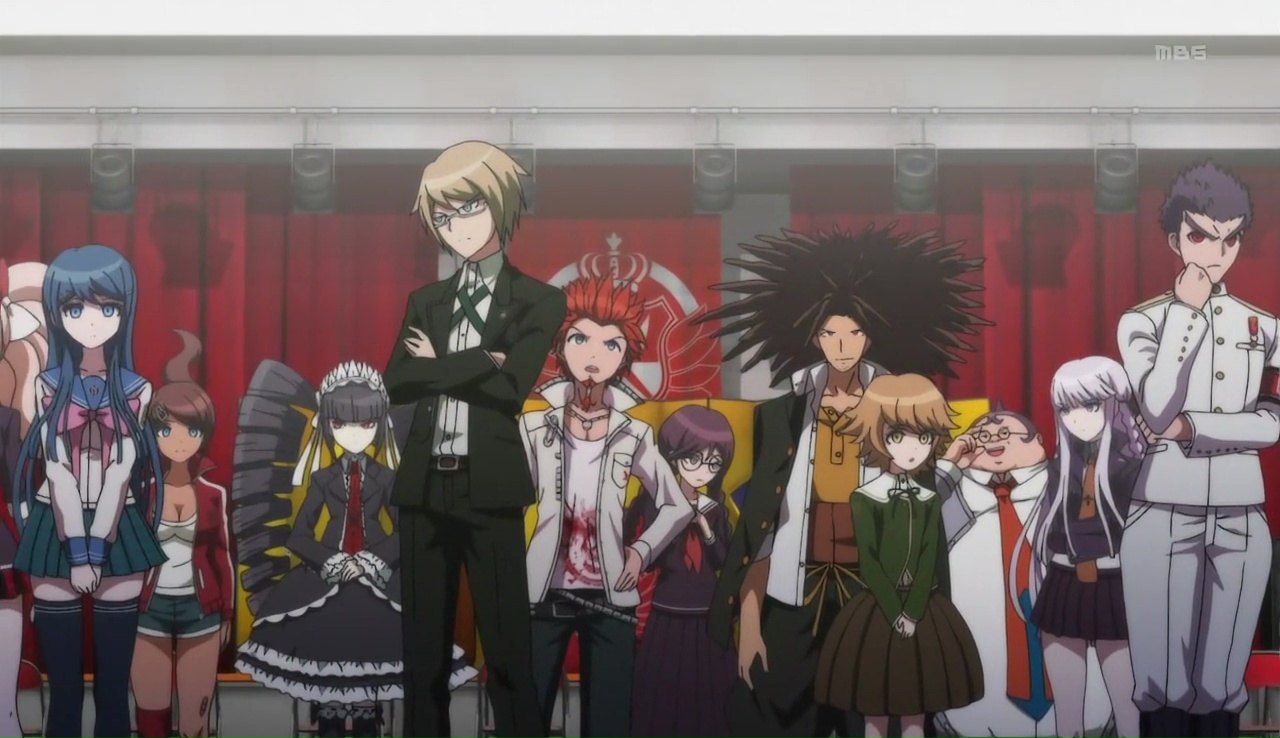 Au Japon, ils aiment le multi format. À savoir que quand un jeu fonctionne, enfin du moins un visual novel, ou un manga, il sera forcément adapté. Danganronpa, le visual novel de Spike Chunsoft de 2010, a donc eu droit à ses mangas, suites, spin of, mais également à sa série d’animation en 2013. Et si par exemple l’adaptation de Steins ;Gate m’avait fait crisser des dents vu quelques coupes pour faire tenir l’ensemble de l’histoire en 24 épisodes, ce n’est rien à côté de Danganronpa, qui essaye donc de faire tenir environ 30 heures de jeu, et donc de lectures, d’enquêtes et de procès, en seulement 13 épisodes. Oui, 13 épisodes pour 30 heures de jeu. On peut le dire avant même de commencer à regarder la série du coup, Danganronpa the Animation va clairement directement à l’essentiel. Pas de longue introduction, pas de grands moments où l’on apprend le passé des personnages pour leur donner de la profondeur. Tous les ingrédients du jeu sont là, mais sans leur donner de substance. L’histoire est la même, les personnages également, mais là où les coupes sont surtout nombreuses, c’est bel et bien dans les différents personnages, mais surtout dans les phases d’enquêtes… Mais bon, pour ceux qui ne connaissent pas du tout, petit retour en arrière. Makoto Naegi, le personnage principal, débarque dés le début dans l’académie Hope’s Peak, une prestigieuse école qui n’accueille que des Ultimate. À savoir les meilleurs élèves du pays dans leur domaine en particulier.