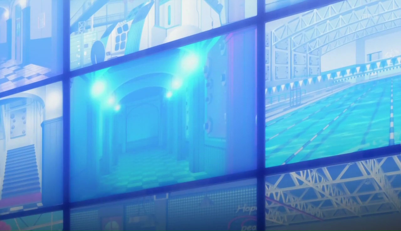 Et c’est le cas malheureusement, Danganronpa The Animation reprend exactement le jeu, en rushant tout. Cela aura un effet différent suivant le type de spectateur donc. Le connaisseur, celui ayant fait le jeu (comme moi qui ai terminé le jeu une journée avant de lancer la série animée) sera perplexe devant certaines coupes, déçu de ne pas retrouver certains éléments, mais retrouvera malgré tout l’ambiance et pas mal d’éléments. Oui, les musiques sont exactement les mêmes, les décors sont identiques, tout comme les choix artistiques et visuels. À savoir que la série change souvent de style, entre animation pure à la Japonaise, des moments aux traits plus appuyés, des styles différents pour les procès, et un style cartoon très différent pour les exécutions. Mieux, on retrouvera également les mêmes doubleurs que le jeu pour tous les personnages, ce qui est un plus, vu qu’ils étaient crédibles, et qu’après 30 heures, on y était bien habitué. Et si je parlais de coupes énormes, cela s’en ressent surtout au niveau des personnages, certains paraissant incroyablement vides (le jeu nous donnait du temps libre pour parler à un personnage de notre choix et en apprendre plus sur lui ou elle), et surtout des moments d’enquêtes, qui ici ne durent jamais plus de 2 minutes. Si bien que lorsque les personnages sortent des indices lors des procès, notre cerveau se souviendra de l’indice aperçu furtivement, ou de sa signification dans le jeu, mais la série animée elle ne perdra pas de temps en explication, car… 13 épisodes.