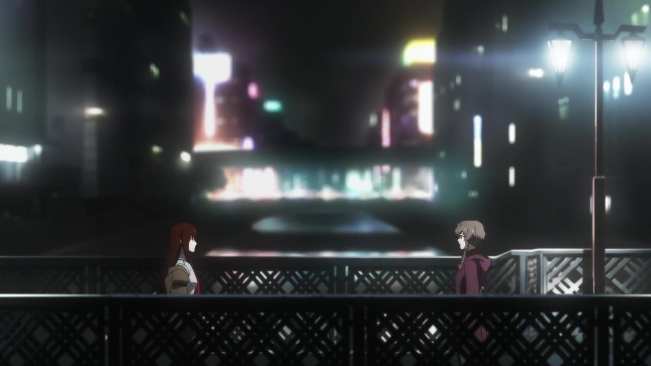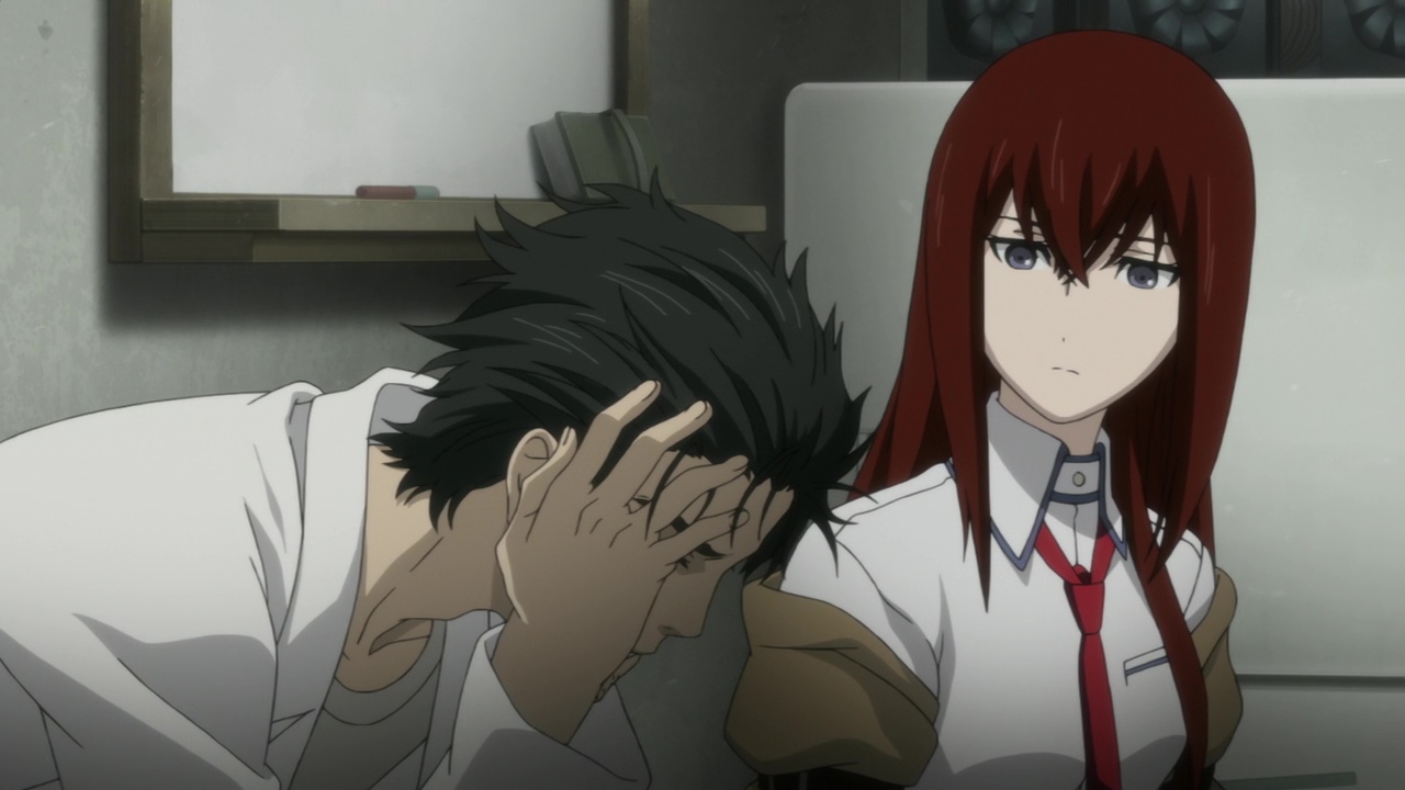 Steins ;Gate, vous savez déjà tout le bien que j’en pense. J’avais adoré le visual novel, et j’ai adoré sa suite il y a peu. Avec le choc que le jeu m’avait mit, je m’étais d’ailleurs empressé de découvrir la série animée de 24 épisodes l’adaptant, et c’était moins bon. Pas mauvais, mais beaucoup moins complet, et donc immersif. Et certains passages avaient été honteusement coupés. Le film Steins ;Gate lui prend place directement après les événements du jeu, et donc de l’anime. Obake Rintarô a réussit à sauver ceux qu’il aime, et a dépassé la divergente 1,00 pour atteindre la ligne temporelle qu’il appelle Steins ;Gate, la ligne de temps où Kurisu n’est pas assassinée, et où Mayuri survit. Tout semble donc aller pour le mieux, et ce film nous envoi directement un an après les événements. Que va donc bien pouvoir nous raconter ce film d’1h30 pour pouvoir justifier son existence, autre que celle de vouloir surfer sur le succès de la série et du visual novel ? Pendant la première demi-heure, nous avons d’ailleurs quelques craintes sur ce que le film raconte (ou ne raconte pas), puisque tout cela ne semble que vouloir nous montrer ce que l’on connaît déjà. On retrouve donc nos personnages, Okabe et Kurisu s’engueulent toujours, Mayuri est toujours nunuche, Daru est toujours un super hacker pervers, Moeka travaille toujours dans le magasin d’électronique de Mr Braun, Suzuha n’est plus dans cette ligne de temps et n’a aucune raison d’y être. Tout va pour le mieux, on retrouve tout ce que l’on aime, et malgré ce sentiment de ne rien voir de neuf, c’est avec un certain plaisir que l’on retrouve tous ces personnages.