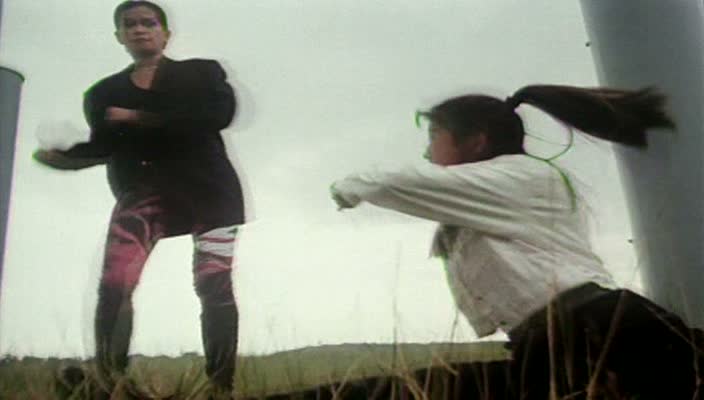 En 1995, le genre Girls With Guns touche à sa fin. Il faut dire que depuis 1985 et Yes Madam (Le Sens du Devoir 2), on a eu le temps de faire le tour de la question en 10 ans. Cynthia Khan sera devenue une des principales actrices de ce genre, depuis Le Sens du Devoir 3 en 1987, genre dans lequel elle se sera enfermée d’elle-même. Après quelques incursions dans le Wu Xia Pian, notamment avec Zen of Sword en 1991, puis Blade of Fury et The 13 Cold-Blooded Eagles en 1993, elle retourne à son genre de prédilection. Minuscule coproduction entre Hong Kong et les Philippines, Angel On Fire a de quoi interpeler le fan d’un genre qui bat de l’aile. Cynthia Khan donc dans le rôle titre, des combats, des courses poursuites, une histoire simple prétexte à amener encore plus d’action, Philip Ko Fei au scénario, à la mise en scène, aux chorégraphies et également dans le rôle du méchant voleur, et Waise Lee dans un petit rôle, retrouvant donc Cynthia après le sixième opus du Sens du Devoir et The 13 Cold-Blooded Eagles. Et en soit, si Angel on Fire n’invente strictement rien, arrivant bien trop tardivement, on peut dire que cette petite production a quelques bons arguments pour elle, et s’avère même plutôt honorable, malgré des défauts évidents, dont certains inhérents au genre.