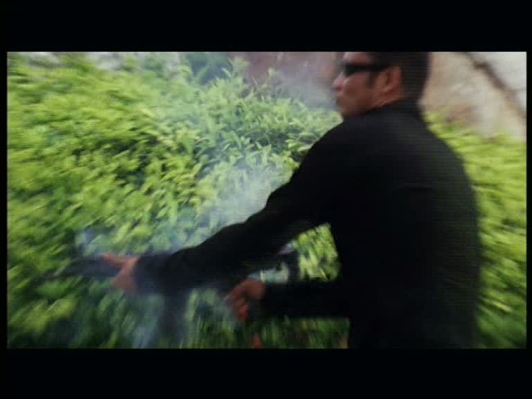 Ici, ils portent tous des costards noirs, des lunettes de soleil noires, ils sont armés, dangereux, ils marchent au ralentis, ils sont unis (plus ou moins), ils ont la classe, ils braquent des banques et autres. Voir ces trois grands acteurs évoluer dans une histoire certes convenue n’est jamais déplaisant, mais dès que l’action débarque, tout tombe à plat encore une fois. Car le film a un très petit budget, et il a bien fallut payer les acteurs. Le reste du film fait immédiatement beaucoup plus fauché, et cela s’en ressent énormément dés que l’action débarque, surtout qu’il n’y en a pas tant que ça, et que le métrage ne dure que 1h20. En effet, le réalisateur, Bee Chan, pour camoufler un peu son manque de budget, nous offre une caméra embarquée qui va souvent abuser du zoom. Ainsi, le sang, nous n’en verrons que peu, les impacts également, on ne comprend pas forcément grand chose à l’écran, et c’est fort dommage. Les scènes d’action, ou de braquages, seront en plus accompagnées d’une musique plutôt inadéquate, semblant datée avant l’heure.