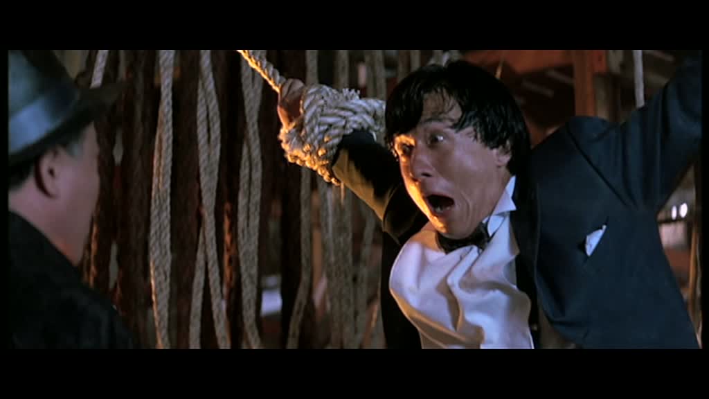 Et oui, plus le film avance, plus les personnages vont se lancer dans des situations folles, à base de kidnapping, ou en recrutant des personnes pour qu’ils se fassent passer pour quelqu’un d’autre. Ainsi, Bill Tung, fidèle collaborateur de Jackie depuis le premier Police Story en 1985, et ce jusque Contre-Attaque en 1996 (8 films pour lui en tout) et le très drôle Richard Ng qui avait déjà tourné auprès de Jackie Chan pour la saga des My Lucky Stars (Le Flic de Hong Kong) se chargent principalement de la partie comique, souvent bien drôle quand on adhère à cet humour improbable ou les personnages font preuve parfois d’une assez grande stupidité. Si l’action, elle, se fait beaucoup plus rares que dans les films précédents (et suivants) de Jackie Chan, il nous offre quelques morceaux de choix, avec notamment un combat impressionnant et extrêmement bien chorégraphié où il affronte plusieurs ennemis en se servant d’échelles et de cordes pour vaincre. Le combat (la poursuite plutôt) dans la rue sera également un très bon moment, nous rappelant que l’on se trouve bel et bien devant un film de Jackie Chan, plus travaillé que d’habitude et mettant bien plus en avant le côté dramatique que le côté cascades. Jackie fait donc ici preuve d’un peu plus de maturité, tout en restant fidèle à lui même dés qu’il le peut. Alors certes, on pourra toujours dire que l’émotion est un peu trop facile sur la fin, qu’il y a moins de combats que d’habitude, mais Big Brother reste un très grand moment dans le carrière de son auteur.