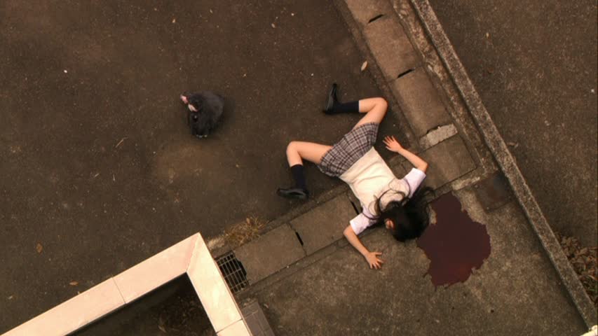 Quand on pense à Fukasaku Kenta, on pense surtout à Battle Royale II, et surtout au fait que le film est un ratage quasi total, au scénario discutable et à la durée bien trop longue de 2h20. Bénéficiant de la notorité de son père Kinji, le bonhomme n’a eu aucun mal à trouver rapidement des budgets pour continuer à faire des films, et on s’est rapidement rendu compte qu’il n’avait absolument pas le même talent que son père. Enchaînant avec un Yo yo Girl Cop (sorti chez nous sous le nom de Tokyo Girl Cop) sans prétention mais un peu moyen (beaucoup ?), puis un X-Cross extrêmement bien filmé mais un peu chiant et enfin un des sketchs du film Kill. Une carrière qui ne brille absolument pas. Black Rat est donc son dernier film, et s’inscrit dans la lignée de sa carrière : pas exceptionnel, mais regardable, au moins. Fukasaku Kenta s’attaque donc cette fois ci au slasher, et à une histoire de vengeance. Un genre vu et revu depuis des dizaines d’années. Fukasaku ne va d’ailleurs pas tenter d’y apporter une once de nouveauté, mais plutôt réaliser un simple film sans prétentions. Est-ce que cela sera salvateur pour le métrage ? Oui et non finalement. Black Rat nous conte donc l’histoire de sept amis. Pour la fin de l’année, Asuka tente de les motiver pour un spectacle dansant racontant l’histoire de sept rats. S’investissant à fond, construisant même des masques de rats, elle est finalement la risée de ses camarades et se jettera du toit de l’école. Utilisant comme il aime souvent le faire (Battle Royale II) un morceau de classique pour accompagner certaines de ces scènes (ici, Aria de Goldberg), Fukasaku réalise son film de manière classique, sans éclairs de génie certes, mais maîtrise son film. Il maîtrise son sujet, enfin en quelque sorte, vu que finalement, Black Rat raconte une histoire classique de tueur, il maîtrise son rythme et la durée de son film. Sans perdre beaucoup de temps, il nous met dans le bain, et on arrive très rapidement au rendez vous donné par le tueur, ou le fantôme d’Asuka (mystère mystère) à la bande de potes. Et là, elle débarque, visage caché derrière le masque de rat. Pas de dialogues, quelques noms sur le tableau, et le carnage peut commencer.