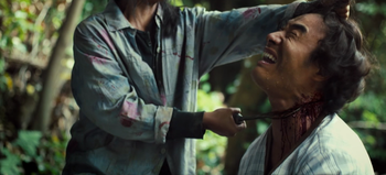 Le ton change, les rôles sont inversés, l’opprimée devient persécutrice. Bok-nam délivre toute sa haine. Armée de sa faucille, tous les résidents de Moodo vont y passer et cela sans aucune pitié. On y voit un festival de tueries et de massacres sous des plans de caméras réjouissant tels que des contre-plongés symbolisant la détermination et la folie de Bok-nam, des contre jours nous dévoilant le côté sombre des protagonistes, des gros plans nous décrivant la cruauté des meurtres… bref un slasher de qualité et à l’hémoglobine généreuse.