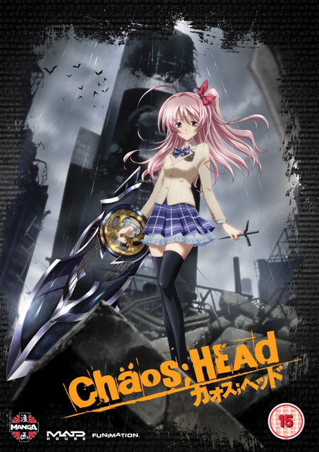 Chaos;HEAd, il y a beaucoup de choses à en dire. Des bonnes, pour sûr, des mauvais également. Mais on sera tous d’accord pour dire que la série de seulement 12 épisodes fait beaucoup d’effort pour nous fournir un spectacle plutôt original, du moins pendant une grande partie du temps. Après une courte scène qui a le don d’énerver (cette manie de placer en ouverture une scène se déroulant bien plus tard), nous faisons la connaissance du héros. Et première constatation, on ne nous offre pas cette fois-ci le classique héros. Takumi Nishijô est un lycéen certes, mais il n’est pas populaire, il n’a pas de talent particulier, il n’est même pas pervers, ni détesté des autres. Il vit seul dans un container, va rarement en cours, il est coupé du monde, il ne comprend pas le monde qui l’entoure et ne veut pas en faire parti. Il préfère s’isoler, rester dans son univers, son monde, fuyant tout contact avec le monde réel en se réfugiant dans les jeux vidéo (un MMO). Un anti héros parfait, et même bien plus, puisque son asociabilité et son souhait de rester coupé du monde provoque chez lui des hallucinations. Son détachement de la réalité lui fait imaginer qu’il vit avec un personnage d’animé dont il collectionne les figurines. Un personnage donc complètement paumé, mais pas stupide pour autant. Juste en retrait, apeuré, seul. D’autres personnages peuplent la série et vont se greffer à l’histoire bien entendu.