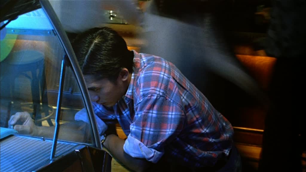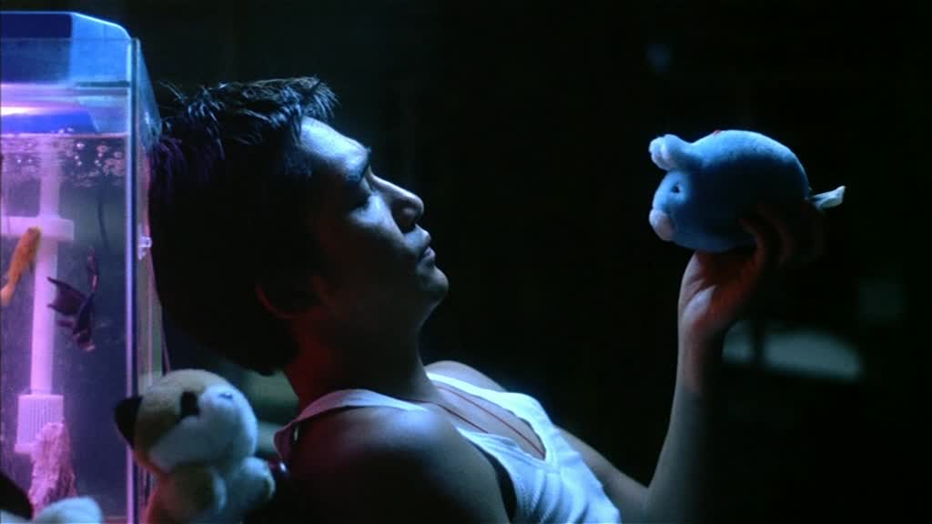 Le lien entre ces deux histoires, outre leurs thèmes ? La nourriture, puisque les deux policiers fréquentent le même fast-food, là où tout va changer pour eux. Si la première partie se fait par moment bien plus sombre (les trafics, quelques meurtres) et plus épique dans son rythme, elle nous présente déjà des notes d’humour, lorsque Kaneshiro Takeshi se décide à manger 30 boites d’ananas en une soirée, ou bien décidera de tomber amoureux de la première femme qui rentrera dans le bar où il est. La seconde partie, malgré l’exploration des mêmes thèmes, se fera bien plus légère, et baignera dans un humour quasi constant lors de ce chassé croisé entre Tony Leung Chiu-Wai, essayant de surmonter le chagrin de sa rupture en parlant à son savon, sa serviette, ou ses peluches, et Faye Wong, magnifique, qui va aller jusqu’à s’infiltrer dans l’appartement de ce jeune flic pour faire le ménage, changer les meubles et autres accessoires. Sans jamais chercher à en faire trop, le film se montre un peu loufoque, par moment absurde, mais toujours avec cette même légèreté, même dans les moments plus graves, rendant l’œuvre totalement savoureuse. Comme à son habitude, Wong Kar-Wai filme tout ça avec génie et simplicité, suivant ses personnages dans les rues, et posant sa caméra lors des scènes plus intimistes, le tout avec un éclairage naturel volontaire de toute beauté. Et après le thème de Top Gun qu’il reprenait dans As Tears Go By, il nous refait le coup avec une chanson des Cranberries ici, réinterprétée par Faye Wong, et jettera également son dévolu sur la chanson California Dreamin’, que l’on pourra entendre au moins 7 fois dans le métrage. Jusque saturation, comme Kaneshiro Takeshi et ses ananas ? Absolument pas ! Chungking Express se consomme sans modération. Comme pour Les Cendres du Temps Redux, ARP nous propose une copie très propre du métrage, autant au niveau de l’image que de l’audio (5.1), avec quelques bonus (présentation par Quentin Tarantino, Featurette, Interview de Christopher Doyle, Bande annonce).