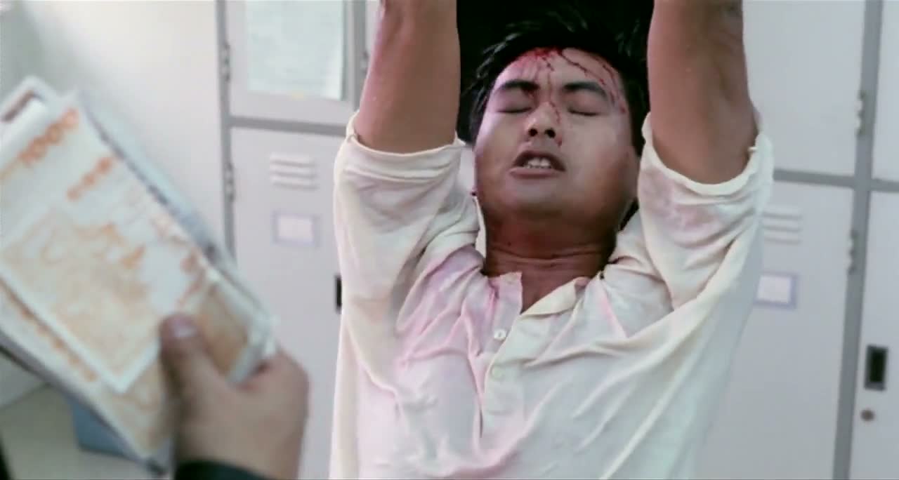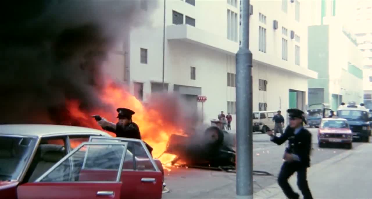 Passé le braquage d’introduction, on nous présente donc le personnage de Ko, joué par Chow Yun-Fat, un flic un peu paumé, infiltré, dont la vie sentimentale bat de l’aile. Les flics eux même ne savent plus qui il est, les malfrats ont des doutes sur lui, sa petite amie souffre des nombreuses absences du personnage. Oui, Ko ne sait plus où il en est, mais il continue sa route, obéissant aux ordres de son oncle, qui l’a infiltré, et qui a lui même du mal, au sein de la police, à se faire respecter ou à faire passer ses idées. La vision que Ringo Lam nous offre de la police est intéressante, entre ses personnages un peu prêts à tout pour avoir des renseignements, d’autres qui se font marcher sur les pieds, et au milieu, Ko, infiltré, qui ne sait plus du tout où il en est, allant jusqu’à s’attacher aux malfrats qu’il côtoie, et à cauchemar sur la mort de ses anciens amis. City on Fire possède un fond extrêmement sombre et travaillé, et le scénario y est pour beaucoup. Face à Ko, on trouve Lee Fu, joué donc par le grand Danny Lee, un malfrat au final pas si méchant que ça, qui ne sait pas lire, avouons même au détour d’une scène touchante avec Ko qu’il ne hait pas les flics finalement, mais qu’il s’est retrouvé dans le milieu et qu’il en accepte les règles du jeu : vivre ou mourir, tuer ou être tué.