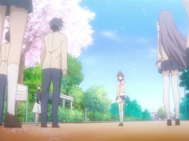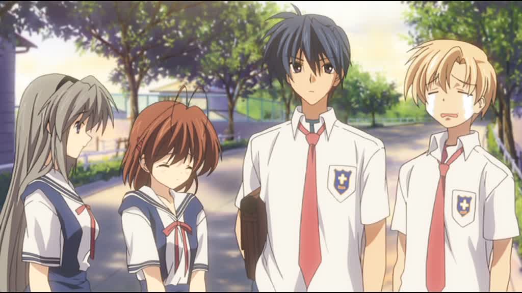 C’est le dernier semestre au lycée. Okazaki Tomoya a enfin avoué son amour à Furukawa Nagisa après la pièce de théâtre qu’ils ont joués pour le festival de l’école. Alors qu’ils sont de plus en plus proches, différents événements vont venir leur rendre la vie dure, à commencer par la maladie de Nagisa qui va refaire surface et lui faire redoubler son année.