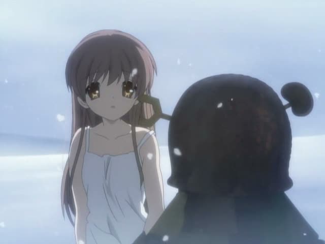En supprimant totalement l’humour passé la moitié de la série, et surtout en évitant de déballer trop souvent ses bons sentiments comme beaucoup trop d’animes (ou de drama tiens par la même occasion), Clannad After Story parvient à intéresser et à rendre sa partie dramatique plutôt réaliste. Nous avons bien pris le temps de nous attacher aux différents personnages pour pouvoir souffrir un minimum à leurs côtés. Mais passé l’épisode 17, la série franchit encore un nouveau cap, qu’il serait très dommage de révéler, et qui ira encore plus loin (ouais c’est possible) tout en restant crédible dans le drame. Ça ne s’arrête pas, loin de là, et jusqu’au tout dernier épisode, les nerfs du spectateur sensible seront mit à rude épreuve. Quand finalement, une petite note d’espoir arrive, la série nous a tellement fait souffrir avec un malin plaisir que notre réaction sera la même, et qu’enfin, les plans les plus envoûtants de la série trouvent leurs vraies significations. De plus en plus fréquent au fur et à mesure de l’avancée de la série, ces courtes scènes donnent carrément une aura mystique à certains passages. Alors oui, Clannad After Story met un peu plus de temps à démarrer que la première série, son début s’avère relativement facile et pas toujours utile, et pourtant, dans sa deuxième partie, toutes ces erreurs sont balayées avec une facilité déconcertante pour amener la série dans des domaines où on ne l’attendait franchement pas, en se montrant plus triste, plus dure, mais également plus réaliste. Une réussite surprenante, à déconseiller ceci dit aux personnes trop sensibles, puisque pour rendre l’ensemble plus réaliste (malgré quelques notes « surnaturelles »), l’humour est également rayé de la carte.