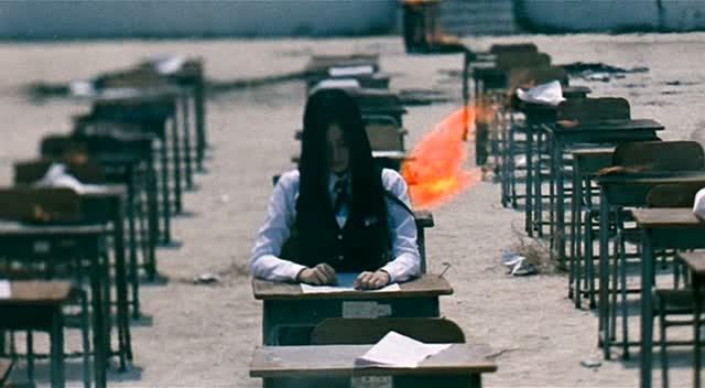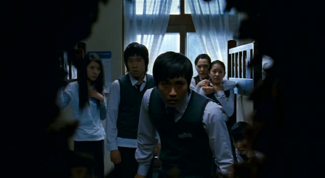 Le Cinéma Coréen, on adore, ou on déteste. Certains metteurs en scène ont en effet tendance à styliser chacun de leurs plans à outrance pour camoufler le vide de leurs sujets, comme Kim Ji-Woon pour ne citer que lui (Deux sœurs, A Bittersweet Life) et son dernier opus en date, I Saw The Devil (J’ai rencontré le Diable), n’était pas très passionnant et était surtout hyper trop long. Et dans le cinéma de genre, c’est limite pire, à quelques exceptions près. Plusieurs catégories : le film stylisé, le film de fantôme inspiré de Ring (la plupart du temps) ou le film imbuvable (Sector 7 non ?). Death Bell part d’un point de départ prometteur, en nous mettant dans une ambiance que l’on ne connaît que trop bien à présent : un lycée. Une vingtaine d’élèves se retrouvent enfermés dans le lycée durant un weekend afin de préparer un concours. Là où l’histoire nous promet du changement, c’est qu’il n’est ici point question de fantômes aux cheveux longs et au teint blafard. Il était temps dirons certains au fond ! Pour autant, le film ne va pas s’éloigner tant que ça du genre en question, d’où une certaine grande déception. S’ouvrant sur une séquence de rêve (artifice facile, nous en sommes conscient), le film nous met directement dans le doute. Si Death Bell n’est à proprement parlé pas un film de fantômes, le film tente de semer le doute à de très nombreuses reprises chez le spectateur. Paradoxalement, ce seront là les ajouts les plus faibles du métrage. Après une rapide présentation des personnages tout ce qu’il y a de plus classique, ou l’on retrouve une héroïne prête à tout, le gentil professeur, le professeur moins gentil, l’élève qui fait des blagues, l’amoureux protecteur et le fou à lier (le cahier de charge des personnages stéréotypés est rempli), nous rentrons dans le vif du sujet.