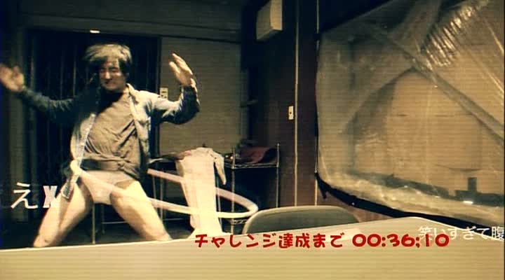 Death Tube est un film très étrange, car naviguant sans cesse dans plusieurs eaux. Celles de la parodie, celles du film sérieux et critique, celles du film sanglant. Comment prendre au sérieux une épreuve où les participants doivent faire la course, manger un donut accroché à une corde, puis prendre cinq petits cubes et les ramener à une table sans les faire tomber pour pouvoir boire un verre d’eau. Le dernier arrivé perd tout simplement la vie. La plupart des épreuves peuvent donc paraître enfantines, pour mieux se moquer de Saw et de tous ces pièges qui perdaient au fur et à mesure des films en crédibilité, mais en général, cela se terminera toujours dans le sang. Et chaque joueur aura bien entendu ses raisons pour vouloir survivre, et donc des alliances et coups de put** auront forcément lieu. Rien de bien neuf à l’horizon si ce n’est l’aspect dérision qui fait l’opposé de Saw. Pourquoi chercher la sophisticité des épreuves, quand on peut faire simple comme pas permi pour un résultat au final similaire : la mort. Ceci dit, autre grande différence majeure, la durée du métrage. Car oui, Death Tube dure tout de même 2 heures. Et pour ce genre de films un peu fauché, deux heures, c’est beaucoup trop. Death Tube aura donc droit à ses longueurs avec son lieu unique et ces huit personnages, alors qu’en petit jeu de massacre, Battle Royale était un chef d’œuvre sur un peu moins de temps et 44 élèves. Enfin, ne comparons pas ce qui n’est pas comparable. Surtout que malgré ce défaut, le film parvient tout de même à nous tenir en haleine la plupart du temps et ce jusque la dernière image. Ce n’est déjà pas si mal. L’ennui ne viendra jamais vraiment, on reste captivé au fur et à mesure des épreuves pour pouvoir rire de la suivante et voir le sort cruel que cette épreuve réserve. Ainsi, le film commence doucement, avec un puzzle à résoudre, un simple Rubik’s cube, avant d’enchaîner sur des épreuves individuelles allant du jeu de hula hoop (que beaucoup de gens doivent maîtriser de nos jours grâce à la Wii) au jeu où il faut tourner 10 fois sur soit même avant d’aller toucher un coin de la pièce.