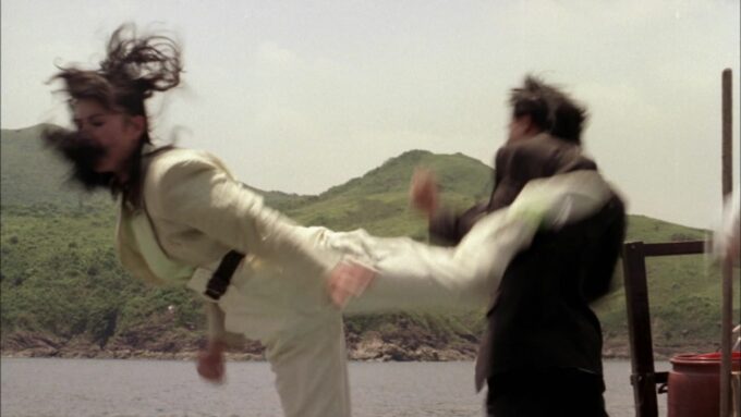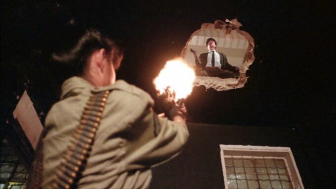 Heureusement que les scènes d’action sont là ! Mal foutues, mal montés, accélérées, tout juste correctement chorégraphiés, elles sont pourtant ultra jouissives et ça n’arrête pas une seconde. C’est simple, sur les 1h30 du film, il doit bien y avoir 1h10 de gunfights, bastons et autres courses poursuites avec une fois de plus dans ce genre de métrage, des cascades qui font mal, des chargeurs qui ne se vident jamais, et des explosions en tout genre. Ray Lui en héros charismatique assure un max dans les scènes de tatane et la scène finale dans laquelle il se bat aux côtés de Moon Lee est vraiment intense. A ce propos, l’explosion finale où ils sautent par le balcon alors qu’il y a une explosion derrière eux n’a pas été doublé, ce qui valu à Moon Lee, à cause du déclenchement de l’explosion une seconde trop tôt, un petit séjour à l’hôpital pour brûlures (coupures de journaux à l’appui lors du générique final). Sont fous ces hongkongais… mais ça on le savait déjà…