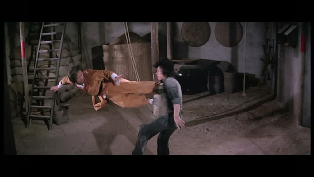 La première raison de ce mix et de ce déséquilibre sera en premier lieu le scénario, qui, en alternant deux histoires différents (la « drague » de la jeune femme et le vol d’objets d’art) ne sait pas vraiment où aller. Si bien que parfois, une intrigue est laissée de côté pendant quelques temps et réapparait plus tard sans prévenir. Un déséquilibre constant donnant plus parfois l’impression d’assister à une succession de scènes, qui fort heureusement, s’avèrent fort impressionnantes. La partie de volants est en effet assurément le premier grand moment du film. Après cela, Jackie Chan place dans son œuvre quelques cascades, notamment sur le toit d’un bâtiment, ainsi qu’un rapide combat ou Jackie commence à trouver son style en utilisant les éléments du décors et en faisant preuve d’une souplesse incroyable. Il en sera de même pour le combat final, plutôt ambitieux et spectaculaire, avec des chutes incroyables de la part de Chan et de Mars, dans une grange. La scène est tout simplement monstrueuse et montre toutes les capacités de l’artiste. Dragon Lord sera un échec au box office, et Jackie Chan abandonnera alors pendant plus de 10 ans la Kung Fu Comedy pure pour trouver son style, qui arrivera dés l’année suivante avec le film gagnant : Project A (Le Marin des Mers de Chine). Dragon Lord, bien que très imparfait, est une œuvre importante dans sa carrière, un mix entre les films plus traditionnels et le style que Jackie Chan optera dés son film suivant. Un film qui pourra donc en décevoir plus d’un mais qui mérite assurément le coup d’œil.