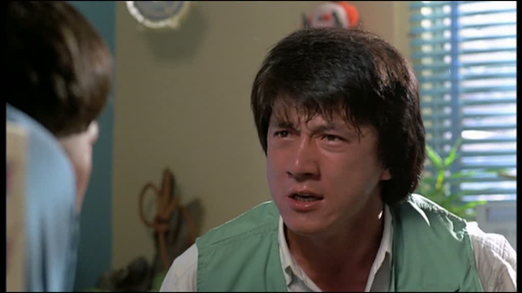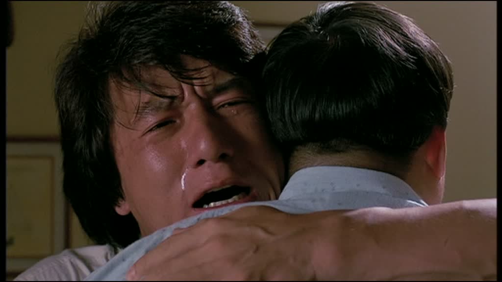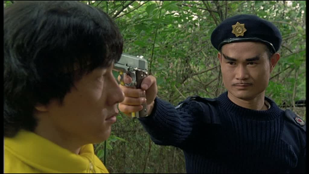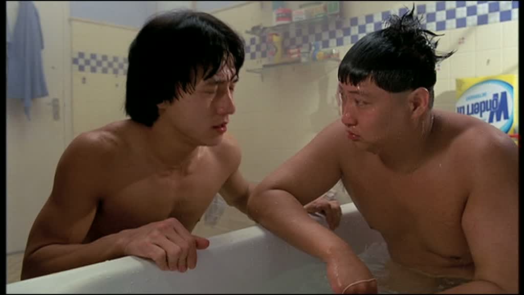 Jackie Chan nous apparaît comme un flic exemplaire, peu importe l’environnement dans lequel il évolue, et sur ce point, ça ne change pas beaucoup de ses autres métrages de cette époque, dans lesquels Jackie interprétait souvent des policiers ou autres un peu nerveux (Police Story la même année). Sauf que dès que Sammo Hung débarque à l’écran, tout change, Hung jouant son grand frère, attardé mental. Toute la première partie de l’histoire va se focaliser sur le duo. D’un côté, Jackie s’occupe de son frère comme il le peut, tout en étant un policier exemplaire et en ayant une petite amie. Mais Jackie aimerait bien respirer un peu, pouvoir enfin penser à lui, afin de vivre son rêve de partir dans la marine et de pouvoir se marier, vivre tout simplement la vie épanouie à laquelle il s’accroche quoi qu’il arrive. Hung lui dans le rôle de Do Do, subit les moqueries des autres, ne traîne qu’avec des petits enfants et se fait embarquer dans des histoires bien trop complexes pour lui.