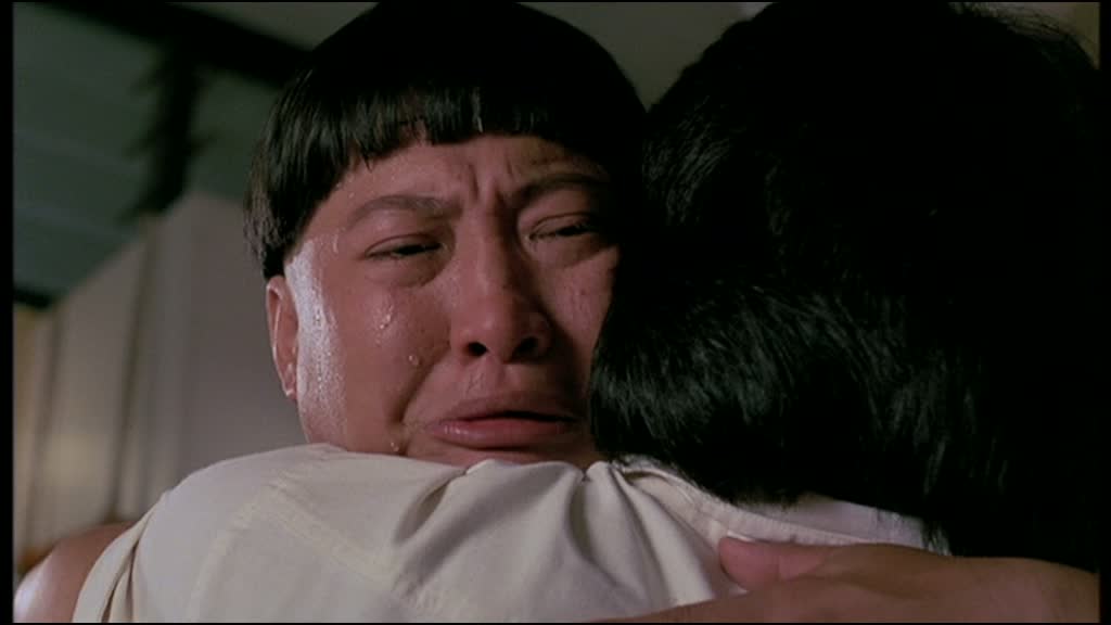 C’est cette première partie qui a le plus d’impact, proposant quelque chose de vraiment nouveau pour le duo. Là où l’on nous avait souvent habitué à des comédies d’action au scénario tenant sur un morceau de papier, Heart of Dragon nous propose de vrais personnages et un drame plutôt juste, bien qu’utilisant parfois de grosses ficelles. On suit le quotidien des deux personnages. Jackie ne vit pas toujours bien la situation, préfère par moment fermer les yeux sur le comportement du monde à l’égard de son frère, et par moment, l’affronte. Sammo Hung lui est victime, victime des autres, abusant de lui. Le film ira de plus en plus loin, de rencontres en rencontres, alternant scènes à l’humour plutôt réussi (il fallait le faire sur un sujet pareil) comme lorsque Do Do se fait passer pour le père d’un de ses amis face au proviseur de l’école avec des scènes où les personnages, hypocrites et méchants, ridiculisent Do Do autant qu’ils le peuvent, juste pour rire. On se souviendra par exemple de Anthony Chan en professeur juste là pour encaisser son chèque, ou encore Wu Ma, gérant profiteur et vraiment méchant d’un petit restaurant. Mixant scènes au rire simples avec des scènes plus dures et dramatiques, l’ensemble fonctionne grâce à la complicité entre Jackie Chan et Sammo Hung, tout deux parfaits dans leur rôle. Ils sont convaincants, se lâchent totalement, et certaines scènes entre les deux frères sonnent vraies, comme lorsque Jackie craque totalement devant son frère et laisse enfin sortir ces sentiments. Passé cette première partie véritablement intéressante et prenante, le film verse alors totalement dans le film d’action, en nous offrant la recette habituelle qui fonctionne encore une fois.