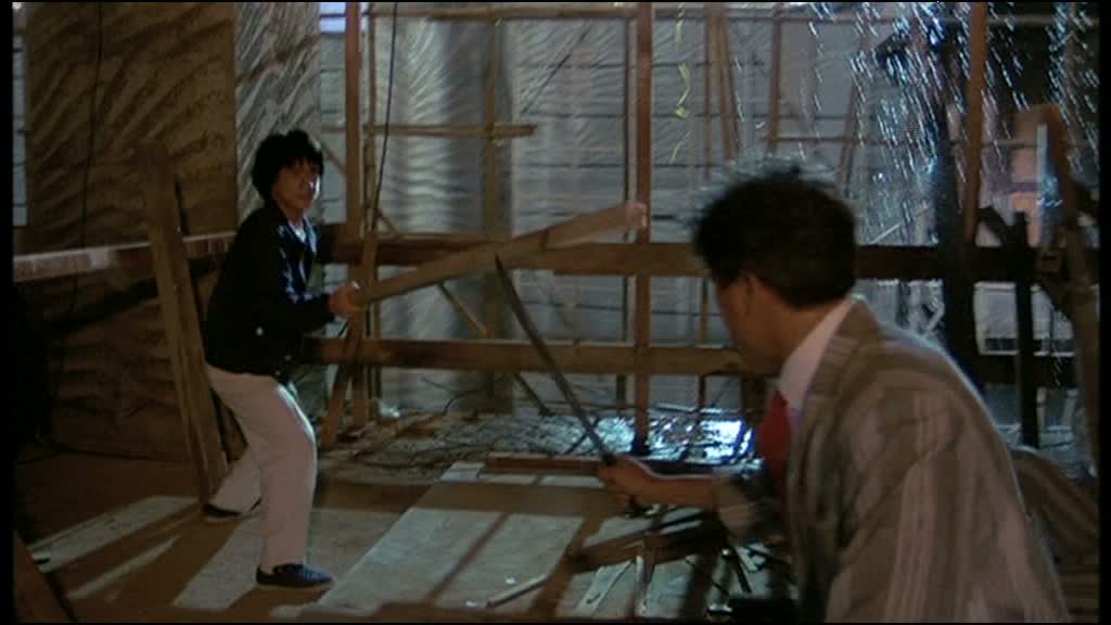 Des méchants très méchants, des bijoux volés, Sammo Hung se retrouvant au mauvais moment au mauvais endroit, un kidnapping, et c’est parti. Là où Sammo Hung avait bien prit le temps de placer son récit et de développer ses personnages dans sa première partie, il se lâche dans la dernière demi-heure en multipliant les situations à la vitesse de l’éclair. Kidnapping, quelques morts, poursuite en voiture, titanesque combat final, le temps passe rapidement, et Jackie Chan va devoir en quelque sorte laisser tomber ses rêves pour secourir son frère. Sammo Hung se tient alors à l’écart et c’est le spectaculaire qui l’emporte. Occasion de retrouver quelques bonnes têtes de l’époque dans des seconds rôles peu développés comme souvent, mais assurant notre quotas d’action. On retrouve donc Dick Wei, habitué des productions de Sammo Hung, qui affrontait déjà Jackie Chan la même année dans My Lucky Stars, Philip Ko Fei, acteur, chorégraphe et réalisateur à ses heures perdues, ou encore James Tien en grand chef malfrat, déjà vu dans un rôle similaire dans Winners and Sinners (Le Gagnant) en 1983. Sammo Hung se lâche totalement dans son final dans un bâtiment en construction, décor qu’il tentera de reprendre des années plus tard avec son Mister Cool, mais en beaucoup moins bon. Ici, les combats sont vifs, rapides, et aussi particulièrement violent, les personnages s’hésitant pas à se servir de pioches et de machettes pour achever leurs adversaires. Sammo Hung aurait d’ailleurs pu terminer son film ainsi, sur cette note violente, suivie d’un happy end où tout rentre dans l’ordre et où l’horizon s’éclairci. Au lieu de ça, il préfèrera terminer son film de manière bien plus subtile et maligne, mais surtout bien plus réaliste envers ses personnages, terminant son film comme il l’a commencé.