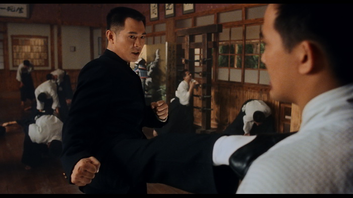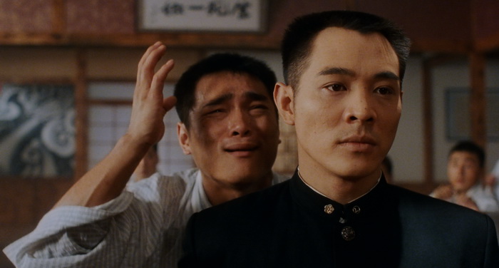Fist of Legend est un film martial arrivé tardivement dans un Hong Kong qui, avec l’approche de la rétrocession, avait peu à peu abandonné le genre pour se concentrer sur autre chose. Il est d’ailleurs sans doute, avec The Blade, un des derniers beaux représentants d’un genre, Kung Fu pour l’un, film de sabre pour l’autre, devenu moribond à cette époque. Fist of Legend a le mérite de ne pas pomper allègrement l’original, n’hésitant pas à changer des personnages et surtout à retirer ce racisme primaire envers les japonais qu’on retrouvait tout le long du film de Bruce Lee. Vingt ans après, les mœurs ont heureusement évoluées (quoique ça dépend des films), et Gordon Chan n’hésite pas à le montrer à l’écran, transformant la petite amie chinoise en japonaise, presque impensable à l’époque de l’original, et même en y ajoutant un vieux maitre d’arts martiaux japonais plutôt bienveillant avec ses équivalents chinois bien plus jeunes que lui. La trame générale est tout de même respecté et on sent que Fist of Legend est vraiment un hommage au film de Bruce Lee, avec une photo du vieux maitre décédé qui est quasiment la même d’un film à l’autre ou encore Jet Li qui, lors de certains combats, va reprendre certaines mimiques de son ainé comme son fameux sautillement.