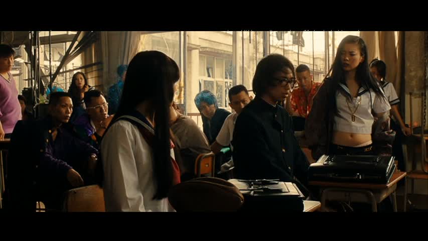 Passé la moitié de son histoire, le film va se calmer totalement au niveau musical, relégué en arrière plan et souvent moins inspiré, pour se concentrer sur la romance, moins captivante, et surtout sur la baston. Ainsi, on a parfois l’impression, dans sa seconde partie, de se retrouver devant un Crows Zero bis dans lesquels les gangs se foutent sur la gueule, non pas pour le contrôler de l’école, mais pour avoir le cœur de Matoko. Pire, on retrouvera un peu le même schéma que dans Crows Zéro 2 (une école, des étages, le boss de fin sur le toit). Heureusement que le film conserve son humour pour faire passer la pilule, même si au final, on est beaucoup moins envouté par sa seconde partie, jusqu’à un final dont Miike à la secret, se foutant ouvertement de la gueule des comédies romantiques de studios, en faisant quelque peu l’opposé de ce qu’on aurait du lui demander. Miike dit non aux happy ending, et fait son film, en respectant et parfois détournant le cahier de charge. Au moins, il parvient à le rendre plus divertissant et buvable que certains de ces derniers films, même s’il est loin d’être parfait. Ça aurait pu être bien pire.