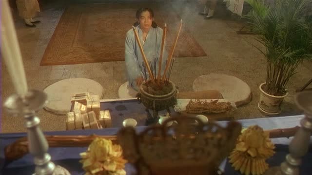 Fox Legend est une réalisation plutôt méconnue de Wu Ma, que l’on ne présente plus. Et dès le lancement du film, une sensation de déjà vue s’installe. Une sensation qui ne nous lâchera jamais durant toute la vision du métrage. On nous présente dans un premier temps le chasseur King, joué par Wu Ma en personne, un chasseur de fantômes et autres esprits maléfiques du folklore Chinois, ici donc, les esprits renards. Wu Ma reprend donc exactement le même rôle qu’il tenait 4 ans plus tôt dans Histoires de Fantômes Chinois, un moine taoïste chasseur de démons. Mimiques, jeu d’acteur, psychologie du personnage, on le retrouvera même en train de chanter à un moment, ou encore à vouloir tuer le gentil esprit ou encore à vouloir former le personnage principal une nouvelle fois victime, venant encore une fois rapprocher l’univers des deux métrages. Mais ce n’est encore rien. Puisque tout dans le métrage nous rappellera Histoires de Fantômes Chinois, et pas seulement Wu Ma. Le mix folklore / romance / action est bel et bien là, et pire encore, dans un rôle tout à fait similaire, on trouve dans le rôle du gentil esprit Joey Wong, dans un rôle plus qu’à l’identique. Elle devra obéir à sa mère en séduisant un homme et en le tuant, mais finira par en tomber amoureux et vouloir le sauver. Si en plus, on ajoute à cela une coiffure et des costumes à l’identique, ainsi qu’une relation entre chaque personnage identique, Fox Legend ne révèle immédiatement plus aucune surprise.