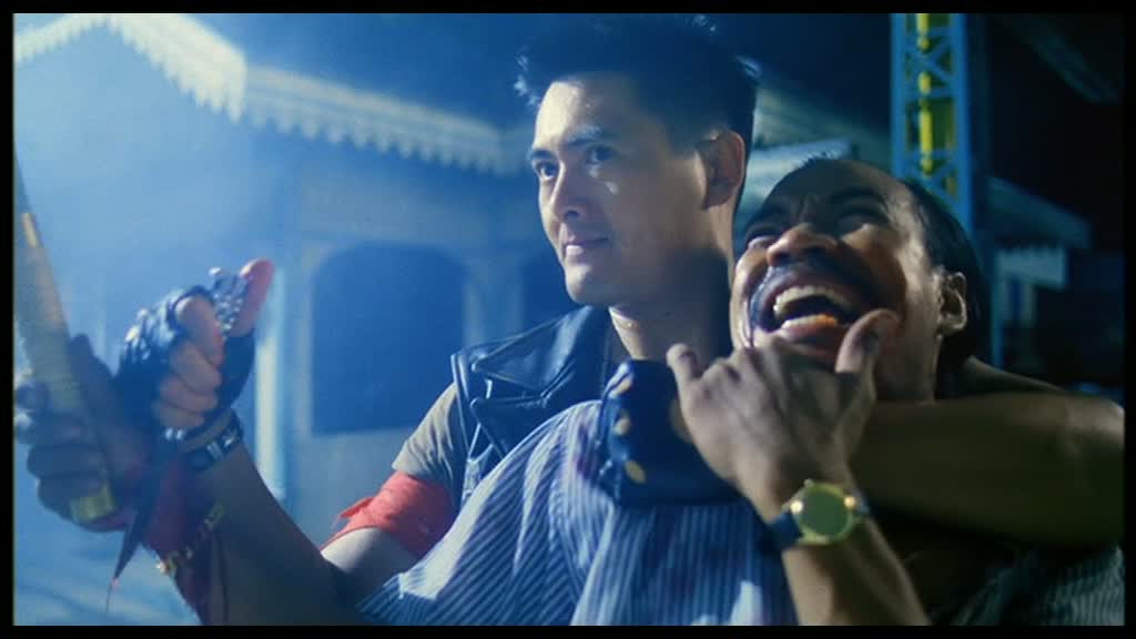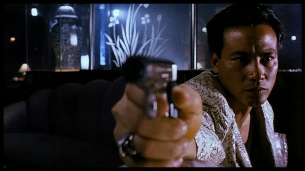 L’union des deux groupes va se faire explosive, et forcément, certains vont y laisser des plumes. On arrive donc à la violence du film. Car Full Contact se fait par moment bien violent, en plus d’être parfois bien vulgaire. La violence sera pourtant rare, et souvent rapide, mais sèche, et réaliste. Coups de couteaux, balle en pleine tête. Ça ne rigole pas. Et tant mieux. À quelques exceptions près (un saut un peu trop haut), l’ensemble se veut très réaliste, et donc sombre et prenant. Ringo Lam se permet tout de même des expérimentations, notamment dans la fusillade du club, où il nous invite à suivre les balles au ralenti (en 1992 hein) ! Un coup de maître réutilisé par d’autres ensuite. Et si le cheminement de l’histoire et des différents personnages reste classique, avec d’un côté Simon Yam un peu foufou et Chow-Yun Fat qui veut se venger, il y a le à côté. Car oui, finalement, le personnage le plus intéressant, qui va le plus évoluer, non sans garder toujours des remords, ce sera le personnage de Anthony Wong, qui va, au fur et à mesure du film, évoluer, passant de petite mauviette à tueur. Mais au fond de lui, sa psychologie est finalement bien plus complexe, cherchant plus à tromper les autres sur son apparence plutôt que changeant réellement. Violent, sec, faussement classique, parfois en avance sur son temps, parfois froid et l’instant d’après outrancier, Full Contact est probablement un des meilleurs métrages de Ringo Lam.