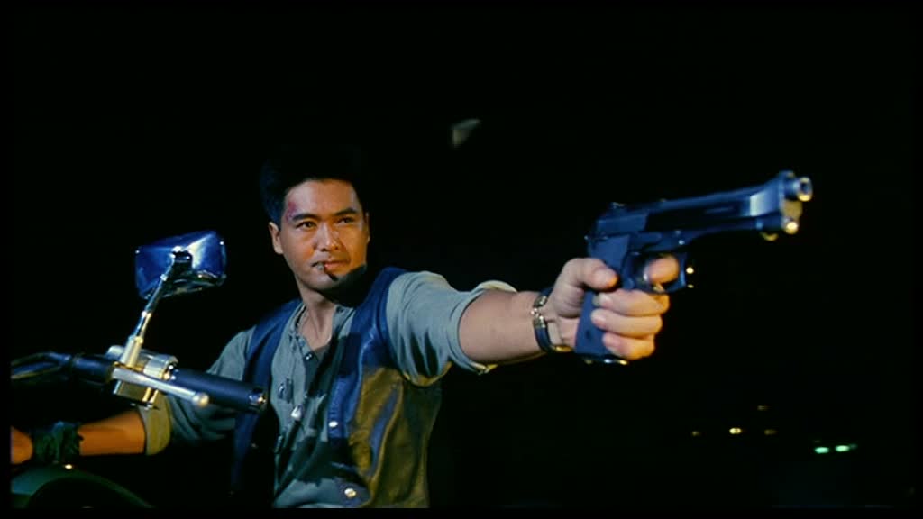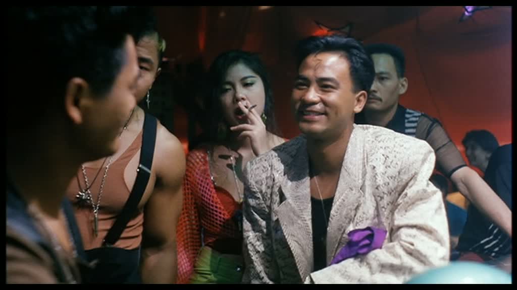 La première partie du métrage nous présente les personnages principaux, et le casse, jusqu’à la mort présumée du personnage principal, qui va alors revenir d’entre les morts (en quelque sorte) pour se venger dans la seconde partie. On découvre donc Gao Fei (Chow Yun-Fat), qui reste sobre tout le long (oui oui), un gentil truand qui n’a pas peur d’utiliser la violence quand cela est nécessaire. À ses côtés, sa copine, Mona (Ann Bridgewater), qui danse dans un bar, Chung (Chris Lee) et surtout, Sam (Anthony Wong – OCTB, Infernal Affairs, Ebola Syndrome), le peureux de la bande. Il est d’ailleurs assez incroyable de voir qu’il joue la même année dans À Toute Épreuve de John Woo, aux côtés de Chow Yun-Fat, pour un rôle à l’opposé de celui qu’il incarne ici (le bad guy qui n’a aucun remord ni morale). Une équipe donc en apparence soudée, que Ringo Lam va s’amuser à tirailler pour faire éclater le groupe au bout d’une vingtaine de minutes : un mort, un traite et un laissé pour mort. Face à eux donc, une bande qui n’a aucune morale. Simon Yam s’amuse comme un fou en jouant un tueur homosexuel, accentuant tous ces gestes, et armé de quelques répliques cultes peu suggestives, ne cachant pas son attirance pour Chow Yun-Fat. Son jeu parfois exagéré, il parvient même à le justifier dans un dialogue, prétextant que pour s’en sortir, il faut être plus fou que les autres. Aucune surprise à le voir accompagné d’une nympho (Bonnie Fu), au rire agaçant et qui n’hésite pas à montrer sa culotte, et d’un fou furieux appelé simplement le taré (Frankie Chan).