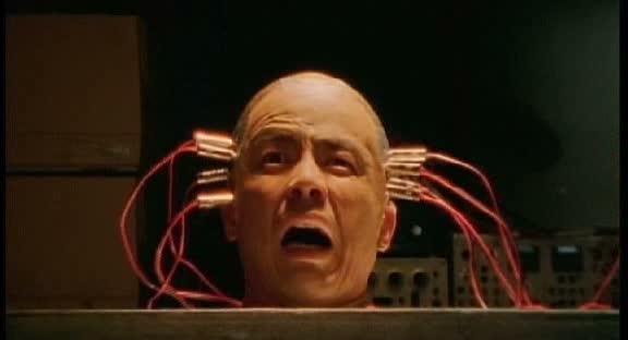 La seconde partie, celle où Miike va se lâcher totalement, commence. Hagane n’est pas mort. Son corps, ainsi que celui de Tousa, est récupéré par un savant fou, interprété par nul autre que Taguchi Tomorowo (L’homme de fer de Tetsuo, vu récemment dans les adaptations de Gantz). Le film va alors enchaîner les situations, toutes plus délirantes les unes que les autres. Devenu un cyborg, doté d’une vision infrarouge et de nocturne, mais également d’un corps en métal et d’un pénis géant, Hagane va devoir s’habituer à son nouveau corps, et surtout, à sa nouvelle nourriture, puisque la seule lui fournissant de l’énergie, et bien, il s’agît d’objets en métal. Heureusement, rien de mieux que de tremper de la ferraille dans du lait pour faire passer tout ça et relever le goût. Miike ira bien plus loin encore dans le délire, avec notamment une belle chorégraphie pour éviter les balles et une berceuse pour permettre à Hagane de se calmer. Quant au pénis géant, et bien, il ne sert pas à grand-chose, si ce n’est de rigoler un bon coup devant tant de culot. Dans des séquences hilarantes, Hagane utilisera ses nouveaux pouvoirs pour terroriser quelques emmerdeurs du quartier qui l’avait précédemment martyrisé, avant de partir dans sa quête de vengeance contre les boss yakuza, dont l’un est interprété par le génial (je ne m’en lasserais jamais de le répéter) Osugi Ren, qui aura ici une fin comique digne de sa réputation. Malgré ses nombreux délires et son aspect fantastique, voir de science-fiction, Full Metal Yakuza suit en tout point la forme classique d’un film de genre, comme Miike sait si bien les faire. Il s’agît d’ailleurs du premier scénario de Era Itaru, avec lequel Miike va colaborer de nombreuses autres fois par la suite, avec notamment Visitor Q et The Guys from Paradise (Les Prisonniers du Paradis), pour ce qui est des réussites.
