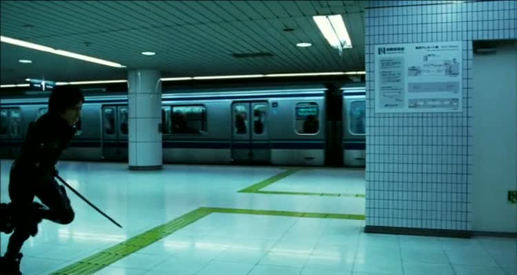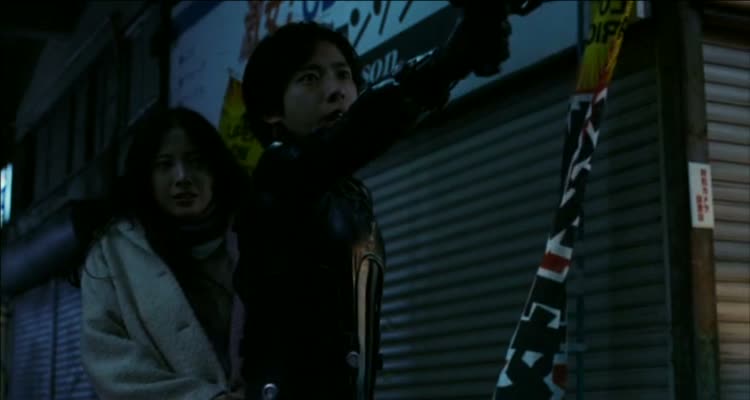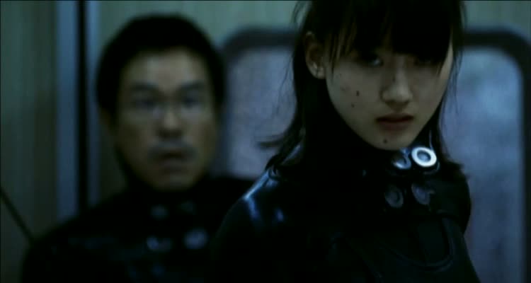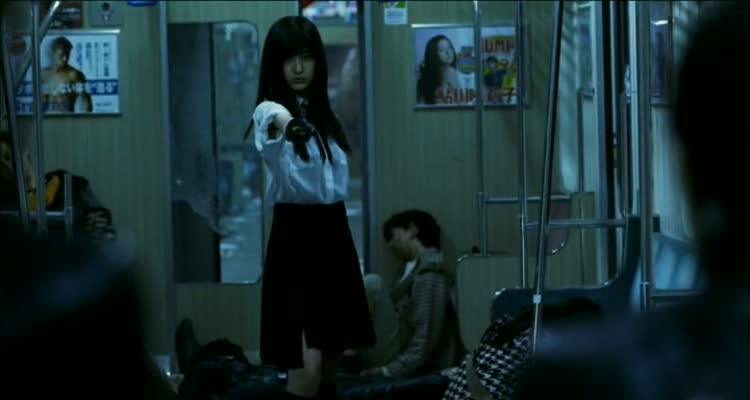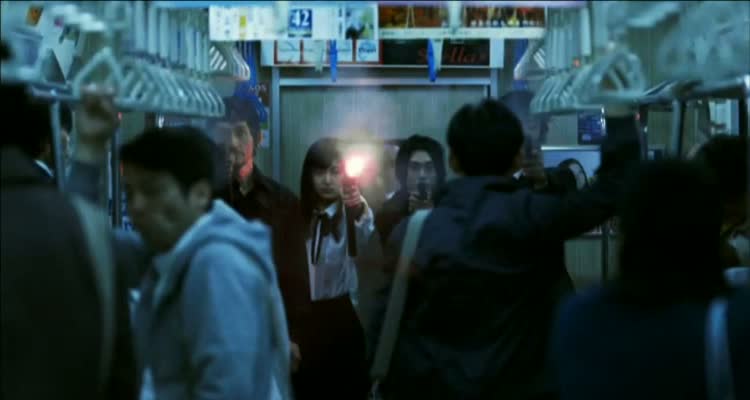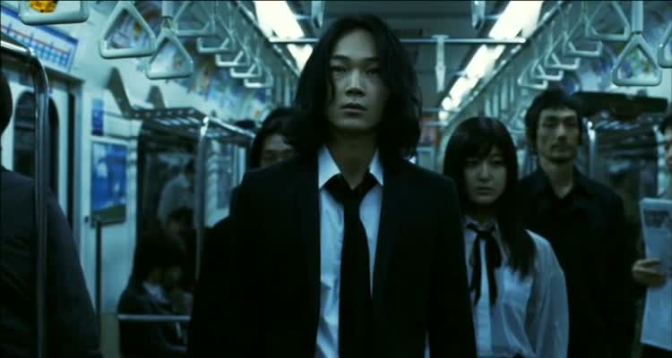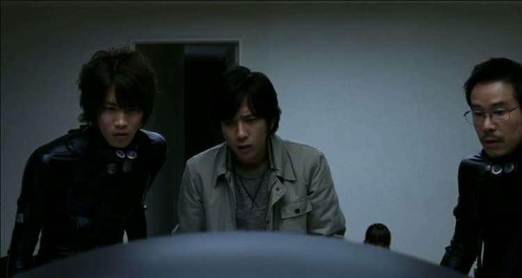 Ajoutons à cela l’apparition d’un deuxième Kâto, le premier étant toujours mort à la fin du premier opus, qui a tout de suite l’air beaucoup moins sympa. Voilà pour la plupart des nouveaux personnages et des nouvelles intrigues, qui, étant pour la plupart inédites du manga de base, apportent un réel sang neuf, et surtout une furieuse envie d’en savoir plus. Heureusement pour le film, l’ensemble s’avère bien plus rythmé que le premier film, qui se perdait dans les passages de la vie quotidienne. Je le répète, ici, quand le film commence, nous aurons droit à la vie quotidienne des personnages importants, mais de manière beaucoup plus réduite et intéressante (par contre non, on n’échappera pas à la niaiserie de certaines situations). Ainsi, nous retrouvons Kei Kurono, proche d’obtenir les 100 points qui lui seront utiles pour ramener Kâto à la vie. En dehors des missions, sa petite vie continue tranquillement, il a enfin trouvé un petit travail, et passe la plupart de son temps libre avec Kojima Tae, jouée par Yoshitaka Yuriko (aperçue dans le très bon Noriko’s Dinner Table de Sion Sono et le sympathique bien que niais Cyborg She). Ensembles, ils s’occupent d’Ayumu, le petit frère de Kâto. Mais là où l’on pourrait craindre que tous ces ajouts, personnages, petites histoires ne servent à rien (comme dans le premier film), c’est l’opposé, et on le comprend vite finalement, et ce dès que la première mission du film arrive. Les personnages secondaires gagnent en profondeur, mais malheureusement, certains sont toujours peu utiles (le détective par exemple). Bref, la première mission. Sans doute l’une des meilleures scènes du métrage, tant elle développe les personnages, tout en nous en donnant pour notre argent niveau action. Car oui, ça dépote sévère. Scène aperçue dans la plupart des bandes annonces, cette mission totalement inédite se déroulera dans un train (le réalisateur aime les trains), permettant de réunir, entre quelques fusillades, courses poursuites et combats au katana, l’ensemble des personnages pour soit les confronter, soit faire grandir dans certains cas ce qu’ils ressentent les uns pour les autres. Notre détective, notre idole, les participants des missions Gantz, le mystérieux groupe, Tae, tout ce beau monde se retrouve au sein de cette scène durant bien une vingtaines de minutes. Passé ce grand moment, on aurait pu craindre que ce second opus se stoppe alors net et ne reprenne son petit bonhomme de chemin tardivement. Au lieu de ça, le scénario enchaîne les retournements de situations, en profite pour ramener quelques personnages à la vie, et se permet de lancer directement ensuite une seconde mission, elle issue du manga (et quel grand moment de la retrouver, même si elle se déroule différemment).
