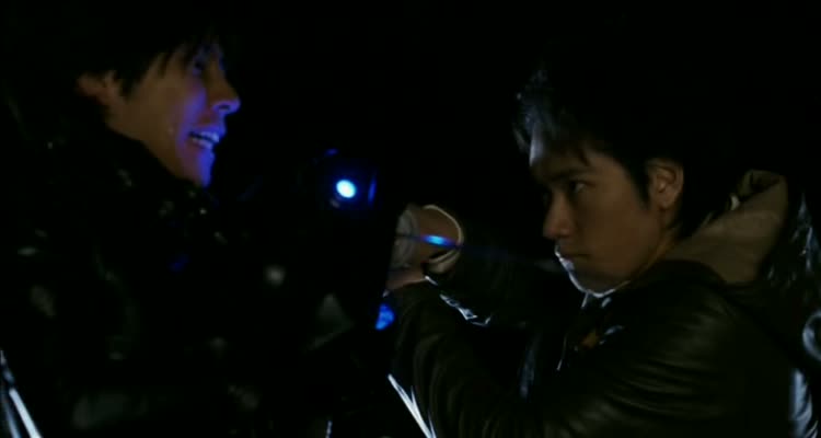 Et c’est, à mon humble avis, lors de cette longue mission (une petite quarantaine de minutes) que Gantz Perfect Answer, en suivant un chemin totalement différent du manga, parvient à renouer quelque peu avec son esprit, sans pour autant en devenir un produit pour adultes. Le sang, présent, ne jaillira pas par litres, et le sexe reste toujours totalement absent, mais les personnages, même les secondaires, gagnent énormément en substance lors de cette mission, et en deviennent ainsi par la même occasion humain, pour de vrai. Le propos se fait alors également plus sombre, et le film peut se lâcher en courses poursuites, trahisons, doutes, ou chacun aura son intérêt à réagir de telle manière ou d’une autre, mais toujours en essayant de rester fidèle à ses propres convictions. C’est ainsi que le personnage de Suzuki, joué par le grand Taguchi Tomorowo (Tetsuo, rien que ça), prend énormément d’importance, ces choix, parfois difficiles, seront pourtant la clé de tout (bon j’exagère un peu, mais bon, vu qu’il ne servait strictement à rien dans le premier film, le voir prendre comme ça de l’importance, ça fait plaisir). Des personnages du premier film referont leurs apparitions pour cette seconde mission, jusqu’à un final n’hésitant pas à mixer l’action et l’émotion, sans pour autant y parvenir tout le temps, la faute à un montage passant parfois beaucoup trop rapidement de l’un à l’autre, et des derniers instants ratés d’une niaserie absolue. Bien entendu, il faut continuer de prendre Gantz Perfect Answer (renommé pour l’occasion en France Gantz 2 : Revolution….) pour ce qu’il est, à savoir un métrage d’action, un peu mystérieux, qui n’arrivera jamais à atteindre la portée du manga, mais qui à présent n’a pas trop à avoir honte. C’est toujours en cherchant à s’éloigner de son modèle tout en essayant d’en capter l’essence que l’on fait les plus belles réussites. Cet opus aura beau n’être qu’un portage tout public pour le cinéma mettant sur le devant de la scène des jeunes pour attirer le public (quoi que, contrairement au premier opus où ils étaient juste passables, j’ai trouvé l’ensemble du casting bien plus convaincant ici – pas tous hein, mais dans l’ensemble), il reste une réussite, surtout pour du cinéma grand public assez terne de nos jours. Quelques fausses notes, mais ça fait plaisir à voir.