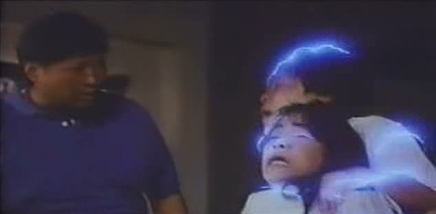 La première demi-heure nous fera assurément rire, en nous montrant les diverses tentatives, toujours ratées, des différents Lucky Stars pour draguer et ainsi emmener avec eux une demoiselle en vacances sur une île un peu perdue. Bien entendu, on s’en doute, c’est peine perdue, et en voyant les phénomènes que sont ces joyeux éternels gamins, on comprend rapidement pourquoi. Mais dès leur arrivée sur le lieu de vacances, Sammo Hung, qui réalise (coréalise en réalité, puisque Corey Yuen, Eric Tsang et Ricky Lau auraient réalisés à ces côtés), décide de mixer sa fameuse saga avec un univers totalement différent, qu’il a lui même créé de toute pièce en 1980 avec Encounter of the Spooky Kind (L’exorciste Chinois). Ainsi, lorsque Richard Ng et Sammo Hung partent visiter une maison abandonnée afin de prendre un fantôme en photo, le film prend des airs de Ghost Kung Fu Comedy, surtout que le métrage contient tous les éléments clés, à la différence qu’il ne les mélange quasiment jamais. Tout le prologue avant l’arrivée dans la maison prend clairement le pas de la comédie, comme souvent, et on rigole, malgré des gags déjà vus. Richard Ng essaye de posséder cette fois ci l’esprit des gens pour leur ordonner de se comporter en chien par exemple. La sauce prend toujours étonnement. Lorsque Richard Ng et Sammo Hung partent en quête de fantôme, le film prend des airs de film fantastique et le fait plutôt bien. La demeure réputée hantée est lugubre, les éclairages bleutés adéquats, et le, enfin, la fantôme n’est finalement qu’une nympho pensant à capturer des hommes pour son plaisir sexuel. Le film entre alors dans sa partie la moins convaincante, Sammo Hung lui disparaît de l’intrigue totalement, et quatre jeunes policières arrivent. Et comme on a déjà vu les 5 précédents opus, on sait très bien comment la bande va réagir face à autant de poitrines.