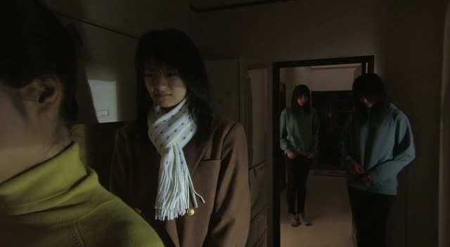 Et Girls College Terror alternera ce genre d’histoires sur toute la durée, nous entraînant souvent d’une histoire réussie ou bien torchée à une autre banale mise en image sans saveur. Quelques histoires sortent du lot bien entendu, et la courte durée permet de ne pas passer un mauvais moment, mais il aurait été plus agréable si l’ensemble des courts métrages avait bénéficié du même sérieux dans leur emballage. Certaines histoires fonctionnent, parfois jamais pleinement, du fait que l’on voudrait forcément en voir plus. Parmi les meilleurs, outre celle de la photocopieuse, on trouvera l’histoire du petit garçon en imper bleu venu traumatiser une jeune lycéenne, ou encore celle de l’appartement dégageant une étrange odeur animale. Sans oublier celle de ce fantôme venant sonner sans arrêt à la porte, sans doute un des plus inquiétants. Il y en aura d’autres de sympathiques, comme celle de cette jeune lycéenne toujours fatiguée qui en rentrant chez elle, s’aperçoit qu’elle a été « dédoublée ». Pas mal de bonnes idées et de bons points de départ en tout cas, qui auraient mérités de faire 5 petites minutes de plus histoire de développer un peu plus et surtout de parvenir à rendre l’ensemble inquiétant. Certains courts s’avèrent pourtant bien torchés, on aura droit à quelques mouvements de caméra pas désagréables, des actrices souvent mignonnes (souvent hein, mais pas toujours non plus). Et à côté de ça, quelques courts franchement peu emballant, peu convaincant, soit par une histoire pas terrible, une mise en image sans saveur, ou tout simplement sans intérêt. Il y a vraiment à boire et à manger dans cette anthologie, comme dans beaucoup d’autres anthologies. La courte durée de l’ensemble, moins d’une heure, permet de ne pas trop s’ennuyer, et on sera plus indulgent en général sur les différents métrages (même si les moins bons sont malheureusement compilés un peu sur la fin, avec le fantôme sexuel un brin ridicule).