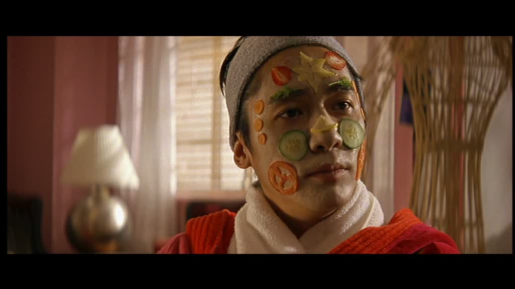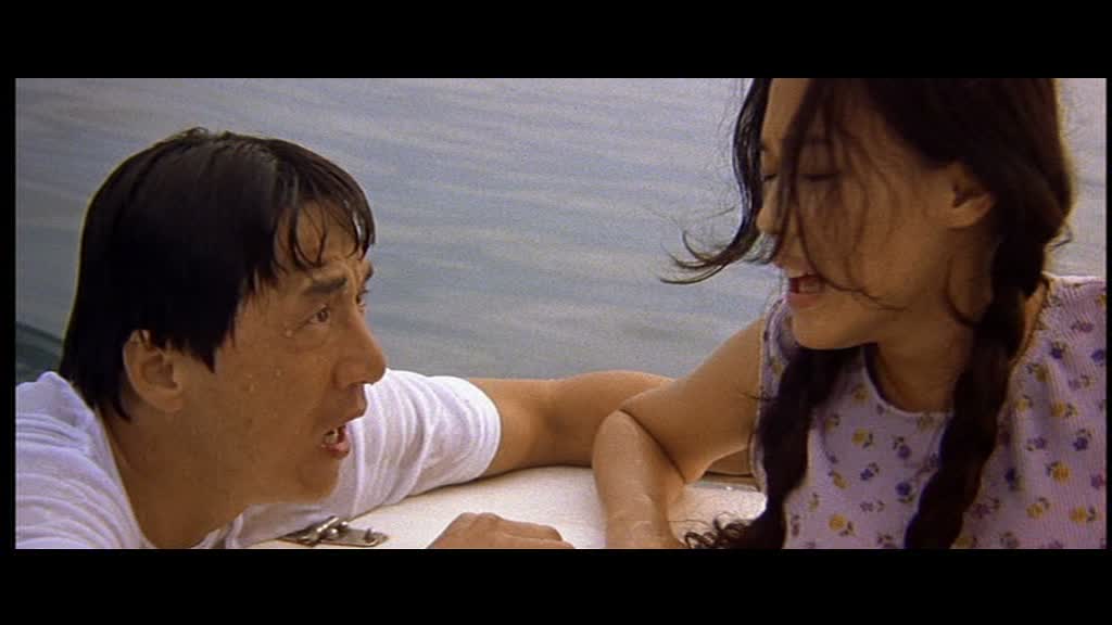 Jouant un petit riche tout ce qu’il y a de plus classique, sa vie va changer lors de sa rencontre avec Bu. Pou jouer Bu, Jackie Chan et son réalisateur, Vincent Kok, choisissent Shu Qi, commençant à percer après des débuts en tant que mannequin de charme et dans quelques films érotiques, après avoir été remarquée dans Sex and Zen 2 en 1996 et être apparue en seulement 3 ans dans plus d’une vingtaine de films. Ici, elle joue une jeune femme niaise croyant au grand amour, qui après avoir découvert un message d’amour dans une bouteille, est touchée et décide de se rendre à Hong Kong pour retrouver l’auteur. Deux personnages donc très différents, comme dans toute bonne comédie romantique qui se respecte, et qui vont forcément tomber amoureux. Sauf qu’en voulant changer de registre, Jackie Chan ne fait pas les choses à moitié et plonge son scénario dans un nuage de niaiserie assumée rapidement insupportable, à l’image d’une Shu Qi hystérique qui ne ferme jamais la bouche, au point que l’on a envie de la claquer assez rapidement. Certes, elle convient parfaitement à ce rôle de petite rêveuse naïve, mais la naïveté à ses limites, et Gorgeous le trouve. La partie romance, qui domine largement le film, est un ratage quasi total, dont on ne sauvera que quelques passages suivant l’humeur et notre tolérance devant le spectacle. Niveau comédie, le spectacle est assuré par un Tony Leung qui semble s’amuser en jouant un homosexuel haut en couleur qui livre quelques moments amusants (enfin ça, c’est aussi suivant l’humeur et le taux de tolérance au film). Dans la première partie, Jackie Chan est un peu effacé, le film se concentrant sur Shu Qi et justement Tony Leung, tout en introduisant le personnage de Chan et de son ennemi juré, un ami (ennemi) riche également, un concurrent, accompagné d’une équipe de bras cassés (dont Ken Lo).