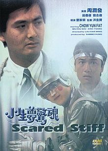 Dans les années 80 à Hong Kong, on le sait bien, les réalisateurs n’avaient pas peur de faire de leurs films de grands fourres tout, de mélanger les genres et de faire du n’importe quoi. Scared Stiff, rebaptisé en France Hallucinations, est un de ces métrages totalement fou qui change de genre et d’ambiance dés qu’il le peut. Sorti en France en DVD sous Metropolitan grâce à Chow Yun-Fat, placé pour l’occasion en tête d’affiche (alors qu’il n’apparaît que dans la dernière partie du récit…), Hallucinations va assurément plaire aux fans du cinéma HK de la bonne époque. Tout commence comme une banale comédie de drague, comme Wong Jing adorait en faire, où comme Sammo Hung, ici producteur d’ailleurs, en faisait dans les années 80. Miao (Michael Miu) et Halley (Eric Tsang) sont deux colocataires. Miao drague à tout va, tandis que Halley n’a pas le physique qu’il faut, et profite de la moindre occasion pour mater. Les gags s’avèrent incroyablement stupides, comme celui où Eric Tsang se fait passer pour un robot pour pouvoir toucher une jeune femme et la regarder se changer. Mais, à côté de cela, on pourra noter une réalisation pas si mauvaise que ça (toute proportion gardée). Bref, c’est kitch, on rigole et c’est le plus important. Et quand on croit que le film ne peut plus nous surprendre, voilà que le film change de genre pour aller dans le fantastique, tout en gardant un gros grain de folie.