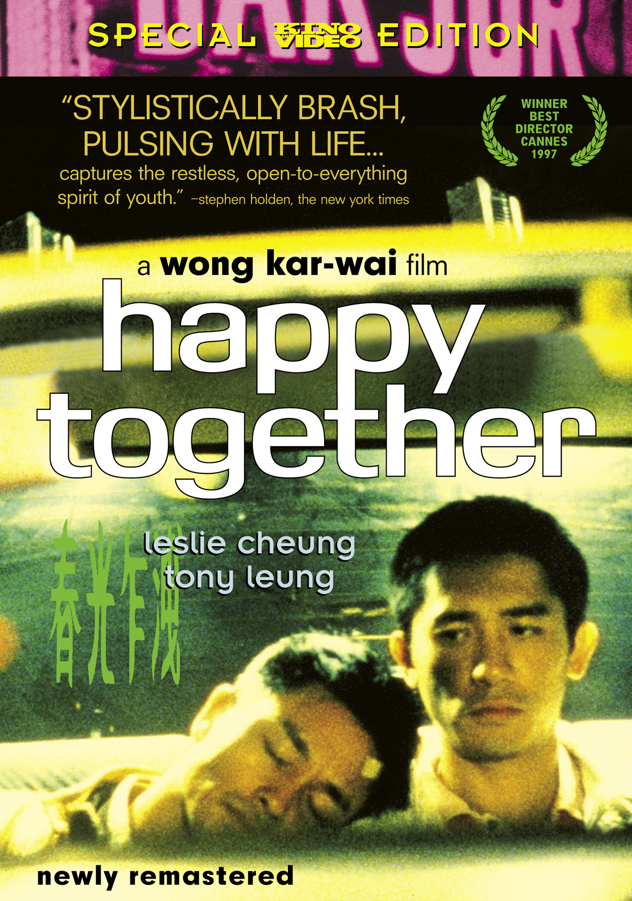 Avec Happy Together en 1997, Wong Kar-Wai continue d’explorer ses thèmes de prédilection, en livrant son film le plus simple depuis bien longtemps. Car Happy Together est un film linéaire. Bien que le destin de trois personnages va se croiser encore une fois, il aborde un style beaucoup plus simple et donc abordable à ceux qui n’adhérais pas au style de Wong Kar-Wai. Passé ce petit changement, Happy Together possède toutes les qualités des autres métrages du réalisateur, et fait encore mouche, en évoquant une nouvelle fois l’amour, la passion, le rejet, les regrets, le chagrin. Pour une fois, après les histoires croisées qu’il nous avait offertes dans ces quatre précédents métrages, il nous propose de n’en suivre qu’une seule, linéaire donc. L’histoire de deux amoureux originaires de Hong Kong, qui se retrouvent en Argentine. Une histoire que bon nombre d’entre nous ont déjà connus : on s’aime, on s’embrouille, on s’éloigne pour mieux revenir ensuite, on doute, mais au bout du compte, on s’aime, et on souffre de toutes ces petites querelles qui nous pourrissent peu à peu la vie. Quand il nous lance dans son récit, Wong Kar-Wai fait le choix de nous plonger dans un noir et blanc contrasté des plus réussi pour la première partie de son récit, ou après une scène sensuelle assez surprenante, il nous présente les deux personnages de son histoire alors qu’ils sont séparés. Lai travaille dans un bar à tango dans l’espoir d’économiser assez d’argent pour pouvoir rentrer chez lui, à Hong Kong. Il vit dans un petit appartement peu cher en banlieue.