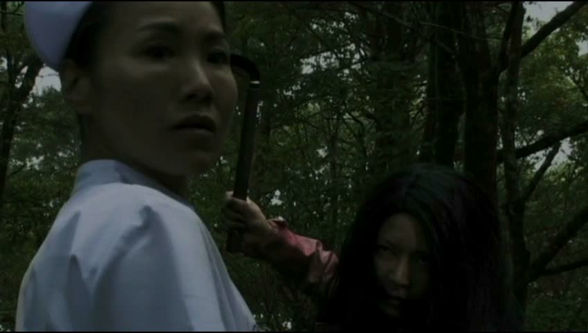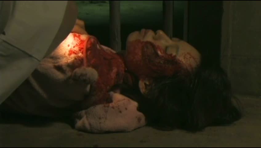 Et de l’autre côté, nous avons une infirmière qui garde enfermée dans l’annexe à côté de l’hôpital une femme défigurée, Kuchisake-Onna donc. Qui va passer le plus clair de son temps enfermée et à attendre que le temps passe. La première rencontre entre les deux légendes sera involontairement comique, dans un film se voulant sérieux à 100%. Ainsi, alors que Kuchisake-Onna vole une proie à Hikiko-San, et que les deux femmes se voient pour la première fois, on s’attend au début d’un super versus, et au final, non, on aura bien droit à 30 secondes de jeu de regards vides entre les deux, avant la disparition de Hikiko-San dans un magnifique fondu à l’image. Le film peut alors reprendre doucement, très doucement son rythme de croisière. Oui oui, nous sommes supposés être en train de regarder un versus entre deux légendes. Le versus arrivera bien entendu, dans les 5 dernières minutes du métrage, et durera, en tout et pour tout, 20 secondes. Vendre un film sur quelque chose que le métrage ne propose pas vraiment, ça c’est une honte. Faire un film d’horreur et rater pratiquement toutes les scènes horrifiques ou sanglantes, c’est une honte également. En fait, oui, le film est une honte, pour le réalisateur, pour les deux légendes, et pour le spectateur qui s’est bien fait rouler.