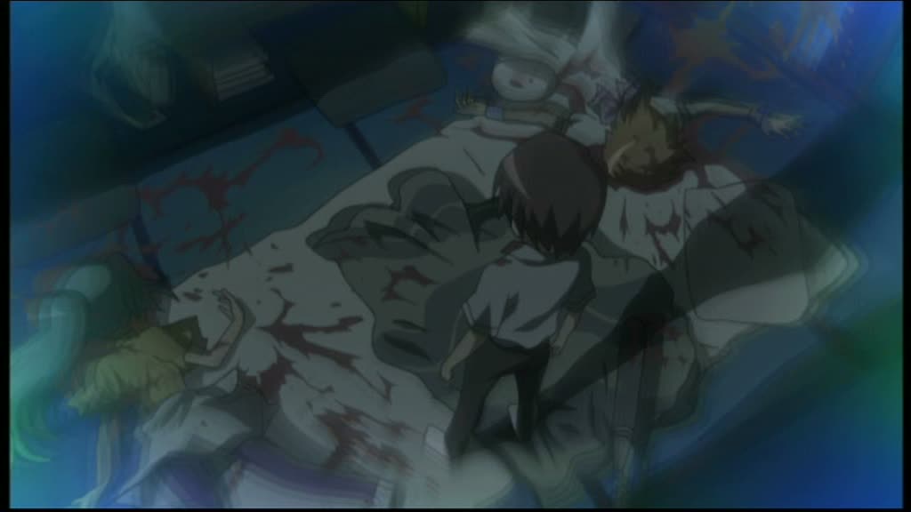 Parfois, on ne comprend pas tout et les réponses viendront deux arcs plus tard pour nous éclaircir sur tel ou tel personnage. Il faut bien se dire que les actions des différents personnages, aussi jeunes soient-ils (Rika et Satoko doivent avoir 10 ans à tout casser), n’ont rien à voir avec leur âge ou leur caractère. Les différentes actions changent en fonction des événements qui sont devant eux, de leurs propres peurs et de leur passé, faisant surgir chez eux un sentiment de schizophrénie qui ne demandait qu’à sortir. C’est bel et bien de ce point là que surgit le plus grand malaise de la série. Ils ont beau être jeunes, mignons, innocents, faire la fête à leur manière, rien n’y personne ne peut être épargné par l’épais mystère du village d’Hinamizawa, qui entraine dans son sillage tout le monde, dans un tourbillon de violence inouïe qui ne demande qu’à exploser.