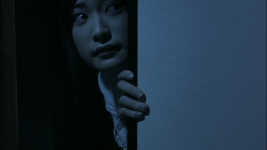 Voilà le concept de base du film, qui nous est parfaitement énoncé dés la scène d’ouverture, ce qui était déjà le cas dans le film original. Mais ici, changement de réalisateur, budget plus confortable, et réalisation bien plus calibrée pour une sortie cinéma. C’est bien simple, la scène d’ouverture est un modèle de mise en scène et d’ambiance. Comme quoi, le cinéma de genre japonais avec filles à cheveux longs sur le visage à encore de beaux jours devant lui, et parvient encore à surprendre et à captiver, tant que le fond change quelque peu et apporte de la nouveauté. La scène d’ouverture, durant bien une bonne dizaine de minutes, nous expose facilement la situation, les règles du jeu, avec un forum internet ou des jeunes se retrouvent pour jouer à Hitori Kakurenbo. Puis nous suivons un personnage, une nouvelle joueuse, qui réfugiée dans son placard avec son verre d’eau salée, va finalement périr, retrouvée par le fantôme. Une entrée fort réussie qui nous montre le talent du metteur en scène : réalisation soignée, photographie sombre parfaitement dans le ton, sens du cadrage et bande sonore parfaitement en adéquation avec les images. Du tout bon en soit. D’ailleurs, pas étonnant de savoir que le réalisateur reviendra sur le troisième opus, le très réussi Hitori Kakurenbo Shin Gekijôban.