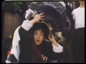 Le film reste tout de même bien rythmé avec également quelques bonnes scènes comme une danse du lion ou bien encore LA scène qui aura retenu mon attention (pour moi inédite dans le ciné HK) que l’on peut caractériser de «danse du singe» ou Chin Siu Ho et ses acolytes, tous maquillés et affublés d’un costume à la Sun Wukong (le roi-singe) nous gratifient de sauts et cascades en tout genre, pour finir sur un solo complètement délirant de Chin Siu Ho qui termine en breakdance. La musique qui jusqu’ici était tambours, cymbales et gongs (normal pour une danse du lion) s’arrête nette, pour laisser place à un morceau plutôt Rock 80’s qui ressemble à du KISS (désolé pour la référence, je ne m’y connais pas trop mais c’est à ce groupe que le morceau m’a fait penser!! ^^). Bref cette scène, c’est du gros délire en barre made in HK.