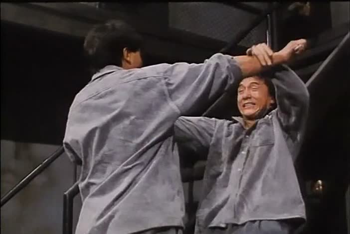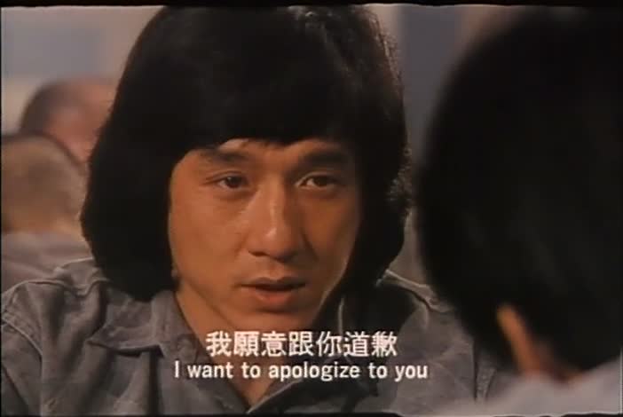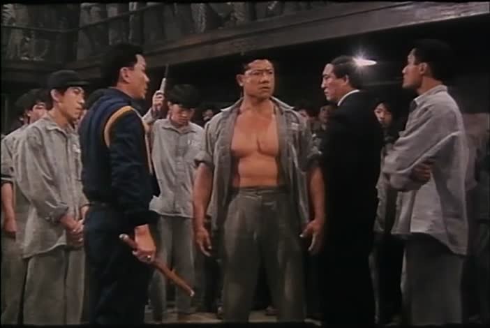 En échange, Jackie accepte de faire deux films pour lui. Le premier, ce sera La Mission Fantastique en 1982, délire n’importe nawak produit par Jimmy Wang, et réalisé par Chu Yen-Ping. Et le second, toujours réalisé par Chu Yen-Ping, ce sera ce Island of Fire, débarquant assez tardivement, en 1990. Film se déroulant dans l’univers carcéral, film sombre et violent copiant un peu partout, Jackie Chan, n’ayant pas la tête d’affiche contrairement à ce qu’on veut nous faire croire, fera tout pour que le film, ne respectant pas l’image que l’acteur aime avoir, n’ai qu’une sortie limitée en rachetant les droits. C’est ainsi que l’on se retrouve avec différents montages. En France, deux DVD (oui, deux), à la durée de 92 minutes, au choix, en français, ou dans un doublage anglais. Le montage le plus court, puisqu’en Amérique, le film dure 96 minutes (dans un doublage anglais bien entendu). Pour pouvoir voir le montage intégral, durant tout de même 2h05, mais permettant de garder toute la cohérence du scénario et le développement des personnages, il faut se tourner vers la version Taïwanaise, doublée en Mandarin, et sous titrée en Cantonais et en Anglais. Et bien entendu, c’est cette version là que j’ai regardé.