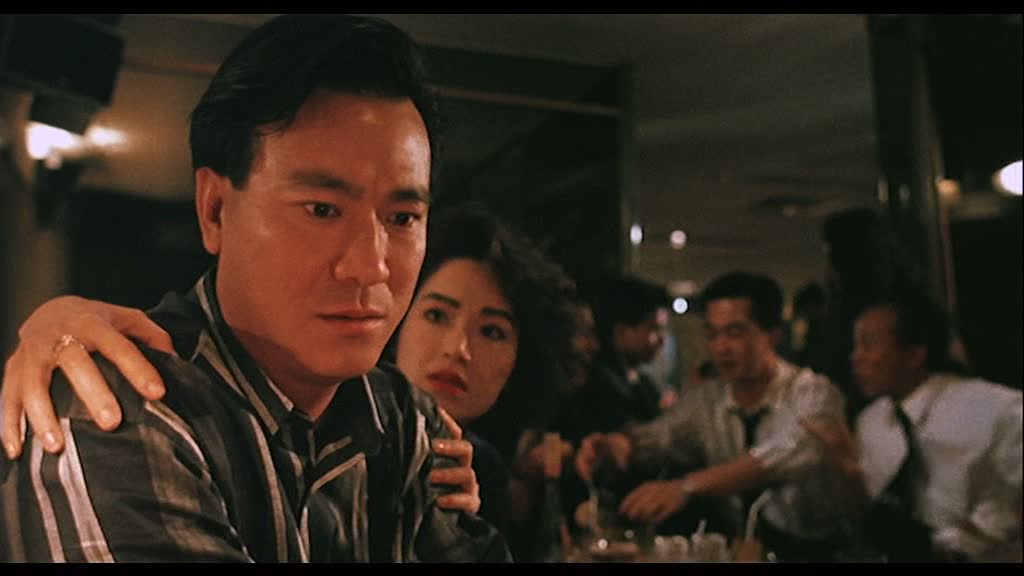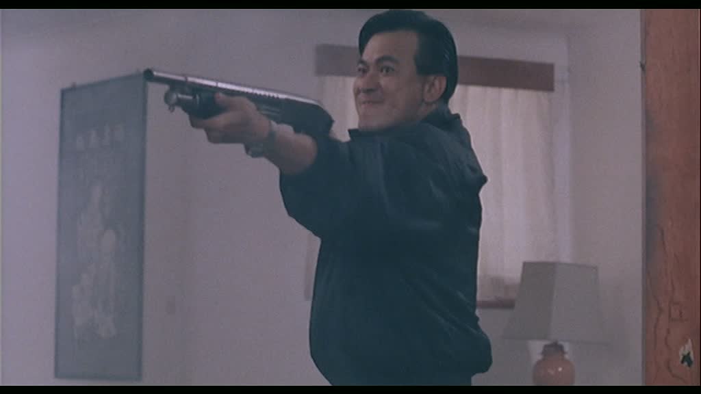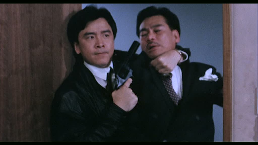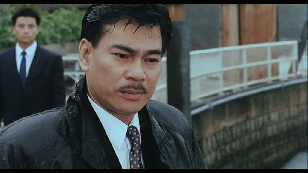 Just Heroes est donc un film aux premiers abords classique, qui va prendre son temps pour développer ses personnages principaux, nous faire les apprécier, et qui va accumuler les pistes et fausses pistes pour nous faire douter de chacun, tout en dynamitant le tout de scènes d’actions comme souvent virtuoses. Woo et Ma font les choses bien d’ailleurs, car entre chaque scène d’action, ils passent d’un personnage à un autre, pour tous les développer, pour que chacun ai sa chance d’être le personnage principal, et donc, que chacun est sa chance de ne pas être le traite et que le spectateur s’attache à lui. Et ça marche facilement. Entre Sou (Danny Lee), homme impulsif mais droit, qui tient à garder une vie normale hors du boulot, avec sa future femme et un enfant en route, Tai (Chen Kuen Tai), pas toujours apprécié par les siens, avec une vie de famille compliquée, ou encore Jacky (Stephen Chow), totalement loyal, admiratif devant Tai, prêt à sacrifier sa vie pour lui, le compte est bon. Woo et Ma ajoutent encore un nouveau personnage, avec Wei, retiré du milieu, vivant de la pêche, et ayant un assistant passant le plus clair de son temps à… imiter Chow Yun-Fat, allumette dans la bouche, en citant les dialogues du Syndicat du Crime ! Le récit est pessimiste, entre ses traites, ces personnages qui ont perdus tout espoir, les tensions présentes et passées, le milieu nous est présenté de manière très sombre, mais néanmoins très humaine. Et c’est là le principal souci du film, qui ne peut s’empêcher de mettre un peu d’humour dans tout ça, comme pour adoucir le ton. Amusant la première fois, l’assistant de Wei, continuant scène après scène de citer Chow Yun-Fat, allant jusque vouloir imiter en pleine fusillade la scène des pots de fleurs, est clairement de trop dans cette intrigue.