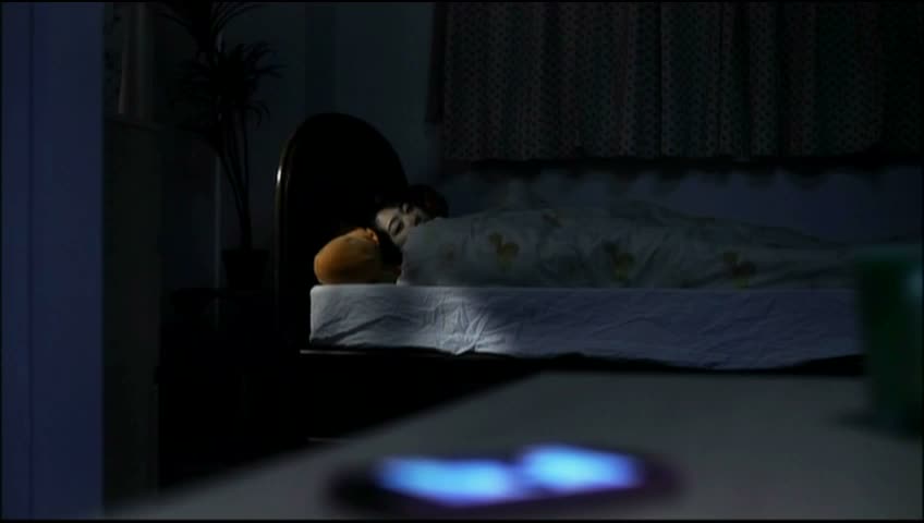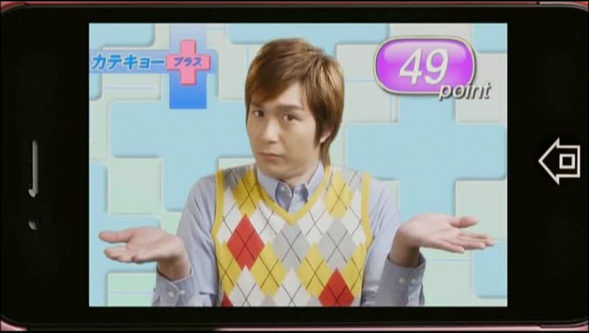 Keitai Kareshi + donc place directement notre idole dans une situation difficile. Maltraitée en cours par ses camarades de classes, elle a beaucoup de mal à se motiver à bouger son cul en cours, et au final, on la comprend. Parmi ses camarades de classes, on reconnaîtra (ou pas) la jeune Momose Misaki (Gothic and Lolita Psycho, The Ancient Dogoo Girls, et également le nouveau film de Chiba Seiji), toujours un peu craquante. Donc plutôt que d’aller en cours, notre jeune idole va faire comme n’importe qui ( ?!) : télécharger une application qui va nous poser des questions afin d’étudier à domicile. Nous montrant un jeune homme en 3D qui s’incrustera sur ce que la caméra du téléphone filme, il nous pose des questions. L’application commence à 50 points, et logique, chaque bonne réponse nous donne 1 point, chaque mauvaise en retire un. Aucune surprise, quand l’application atteint 0 points, c’est la mort, pure et simple, le gentil monsieur de l’application rejoignant alors le monde réel afin d’en finir avec l’utilisation, mauvais élève. Remarquez, si l’éducation était vraiment comme ça, il y aurait beaucoup moins de mauvais élèves… Partant de ce postulat simple comme bonjour et peu innovant, le film n’a pas grand chose pour se démarquer de la concurrence, d’autant plus que la mise en scène, pourtant assez honnête pour ce genre de produits, peine à donner un rythme au récit. La première partie, se déroulant principalement dans l’appartement de notre idole, ne se fait pas très passionnante, et le réalisateur abuse des objectifs déformants (fish eye) pour simuler les objectifs de téléphone portable durant le générique et quelques autres scènes. L’ensemble reste cependant agréable à l’œil, mais plutôt mou du genou.