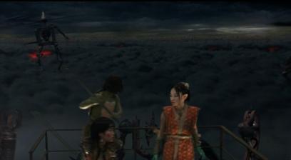Miike nous en met plein les yeux, dans un mélange d’effets fait sur le plateau, et d’effets numériques. Les robots seront eux aussi très réussis, malgré une animation parfois saccadée, mais totalement voulue. Certains yokai auront droit à un traitement très intéressant, comme la princesse Kawahime ou encore Shojo. Ils seront très bien exploités, contrairement à tous les personnages humains, creux au possible. En parallèle, le grand méchant de l’histoire, Kato, ne semble pas très bien exploité, ni définis, et c’est son assistante, Agi, interprétée par Kuriyama Chiaki (Ju-On, Battle Royale, Kill Bill) qui lui volera en quelque sorte la vedette. Dans son superbe costume (avec petite culotte apparente), elle lui vole la vedette, devient aussi attirante que repoussante, de par ses actions et sa morale, mais contient bien plus d’intérêt. Dans son festival de yokai, Miike mettra en plus de l’humour, de l’action, des effets spéciaux, une morale (certes en partie ratée), des personnages intéressants (et d’autres beaucoup moins), et ne réussira pas totalement son pari. En terme de remake, ça reste sans doute intéressant, en terme de métrages à grands spectacle pour les enfants, ça reste aussi bien supérieur à Yatterman ou Ninja Kids, notamment grâce à son visuel plus réussi et moins « je te bousille les yeux », et ça reste du coup acceptable, mais Miike en vendant son âme au spectacle grand public y perd en quelque sorte ce qui faisait le coeur de son cinéma.