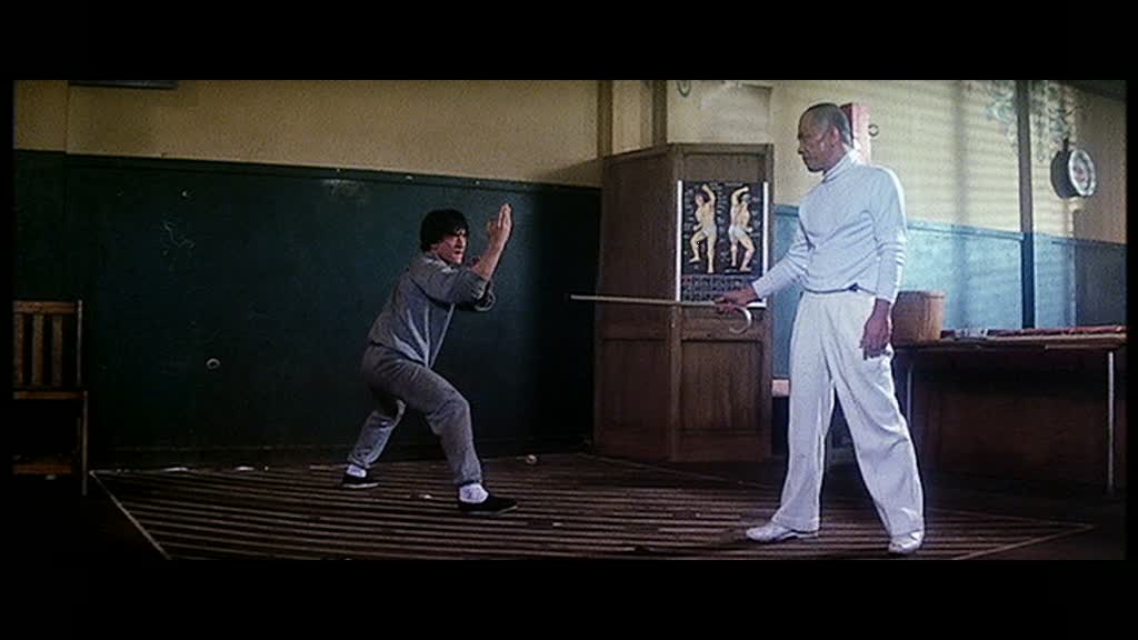 Le métrage, ne brillant vraiment a aucun niveau, nous montrera un Jackie Chan qui se retrouve bien malgré lui au cœur d’une guerre de gang. En voulant défendre son père, il s’attire des ennuis, qui ne le lâcheront plus. N’attendez pas des combats de folie en veut-tu en voilà, non, à la place, on nous montrera le gang voulant s’en prendre au pauvre Jackie lors d’une course de rollers. Les capacités de l’acteur ne sont absolument pas utilisées, et la production semble vouloir l’abaisser au niveau des autres acteurs. Ainsi, Le Chinois va étendre ses différentes scènes d’action sur de bien trop longues minutes, en ne nous montrant rien de vraiment palpitant ou d’impressionnant. Robert Clouse livre un scénario et une mise en scène absolument vide, ne créant aucun rythme, aucune surprise. Ne parlons même pas de la musique du film, pourtant signée Lalo Schifrin (Amityville 1 et 2, L’inspecteur Harry et sa suite, et même par la suite… la trilogie Rush Hour…), qui s’avère tout simplement insupportable et dangereuse pour les oreilles (bien que j’ai pu lire ci et là que de nombreuses personnes appréciaient les sonorités Jazzy de cette composition). Au milieu de tout ça, Robert Clouse qui signe donc également le scénario s’amuse avec les clichés, avec les mafieux tout ce qu’il y a de plus banal, les retournements de situations que l’on voit venir à 10 kilomètres. Lorsque Jackie Chan, testé par un mafieux pour voir ses capacités, devra affronter deux asiatiques sur scènes, Jackie tente encore une fois de se servir des différents éléments du décor pour se battre, mais l’on ressent, comme dans tous les autres combats du métrage, qu’il se bat contre des acteurs qui eux, ne savent pas se battre, ou tout simplement aux styles ne permettant pas des affrontements dignes de ce nom avec le jeune Jackie.