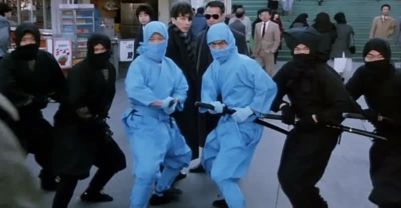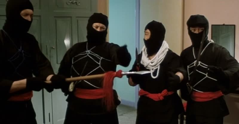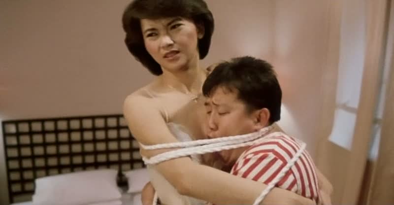 Car comme dans Winners and Sinners, une femme va se retrouver au milieu du groupe (Sibelle Hu ici), et tout le monde va tenter de la séduire. Après donc le coup de l’invisibilité de Richard Ng et la longue scène du marché de l’épisode précédent, la bande va tout simplement se mettre en scène en voleurs ninja, chacun son tour, afin de se retrouver ligoter à la belle Sibelle Hu et pouvoir en profiter. Gardant absolument (au mot près) la même structure narrative que le premier film et en reprenant même certains gags (la tentative pour faire peur à un chauffeur de bus), My Lucky Stars parvient pourtant à faire encore mieux, grâce à des gags encore plus poussés entre les différents membres de la bande. Car outre le coup des ninjas, on retiendra forcément la scène où Eric Tsang, Stanley Fung, Richard Ng et Charlie Chin doivent mimer dans un restaurant ce qu’ils veulent manger afin de se faire servir. Et quand on croit que le métrage ne peut pas aller plus loin, il y parvient pourtant, et les gags s’enchaînent pour nous faire rire tout le long. On ne peut que saluer pour le coup les talents d’écriture de Barry Wong pour avoir eu autant d’originalité en partant d’une base totalement similaire à Winners and Sinners. Et comme souvent, la palme revient à Richard Ng, totalement hallucinant dans son rôle (quand on le découvre, il est dans un asile, se promenant avec un canard).